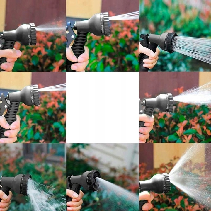 Садовий шланг має аж 8 типів розпилювачів, тому він може виконувати багато функцій. З його допомогою ми можемо поливати газон, квіти, купати домашніх тварин і мити машину.