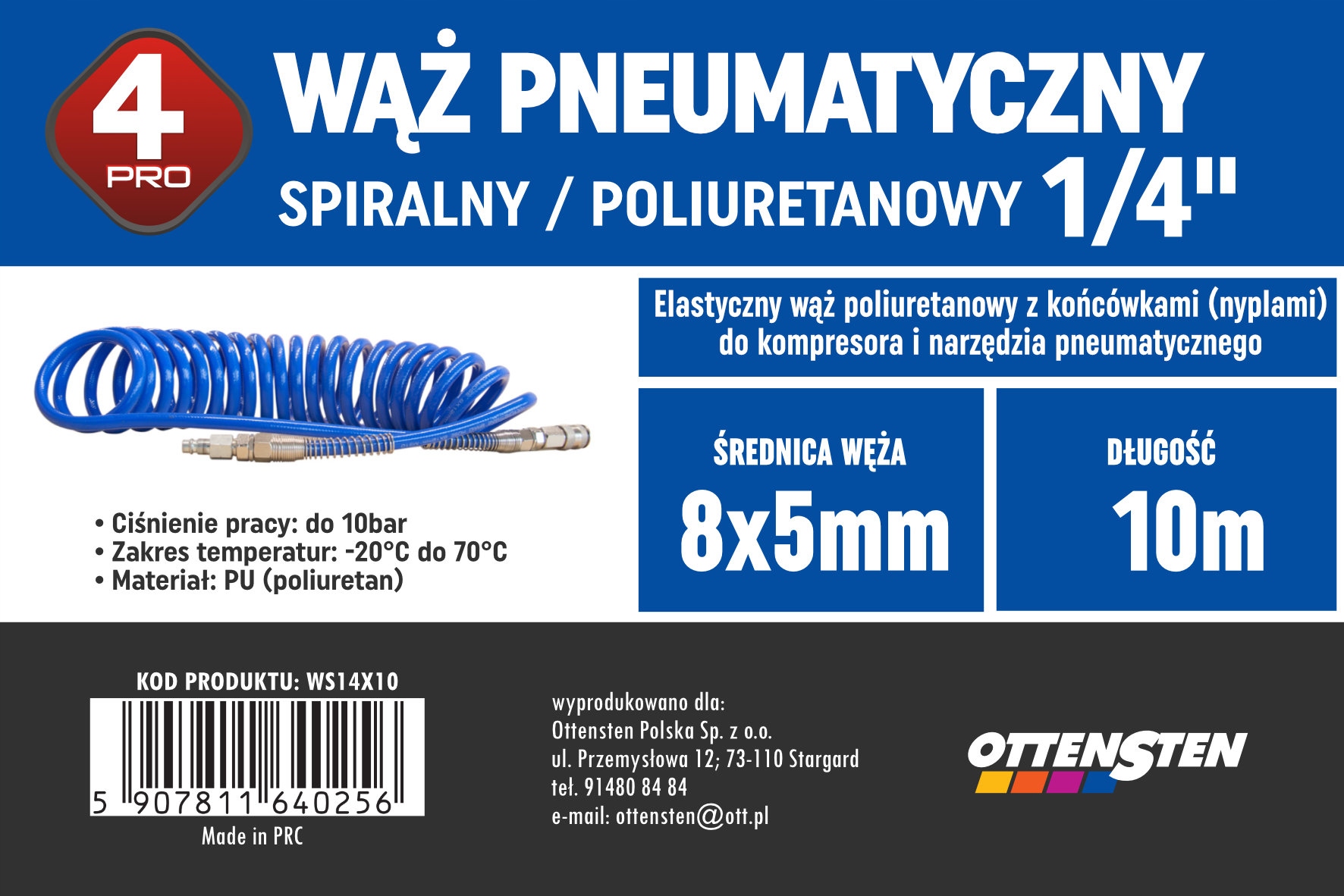 Wąż spiralny 4Pro 1/4" 10 m