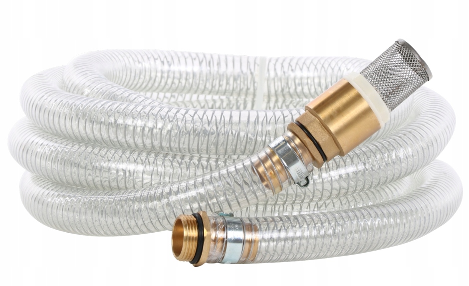 Його використовують на ділянках, у садах, на будівельних майданчиках і скрізь, де ми хочемо швидко, легко та надійно підключити всмоктувальну установку до насоса або гідрофор. Завдяки спіральній структурі він не стискається під тиском вакууму. Характеризується високою гнучкістю і довговічністю. Він має підключення 1" і вбудований всмоктуючий кошик із зворотним клапаном.