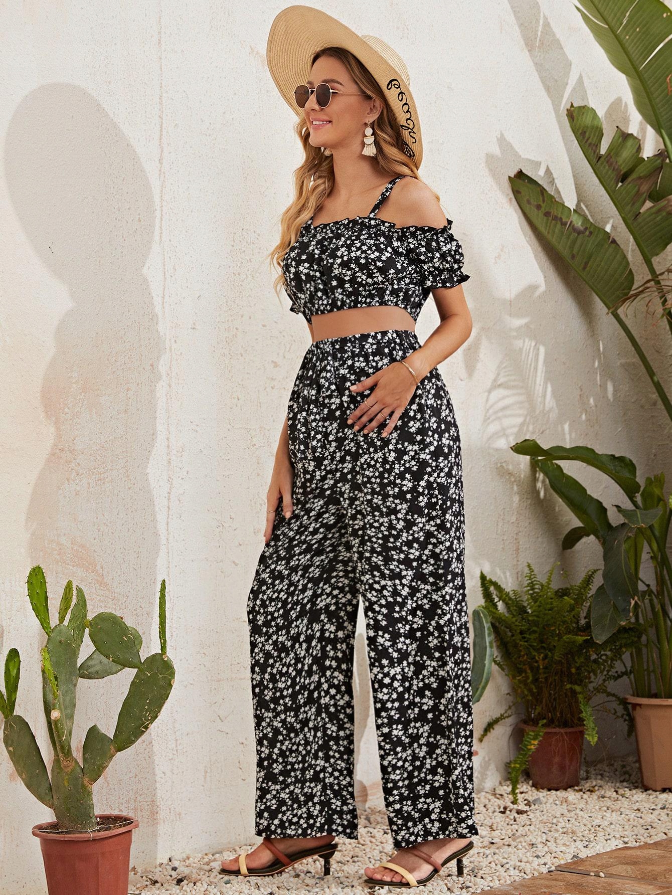 W006R48 КОМПЛЕКТ ДЛЯ ВАГІЛЬНИХ БРЮКИ ВЕРХ SHEIN ВИЗІРУНОК 36