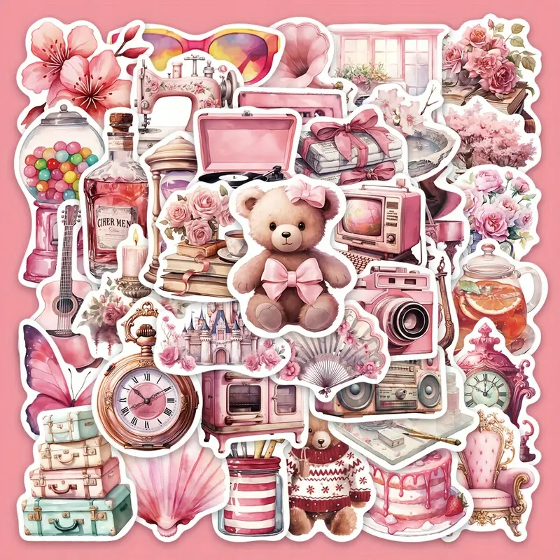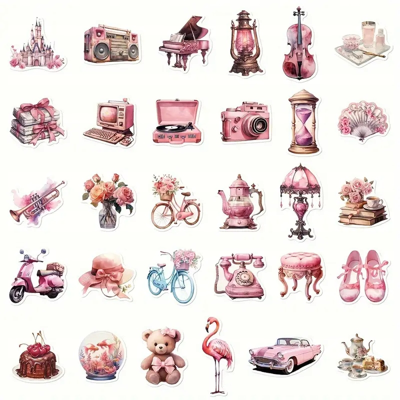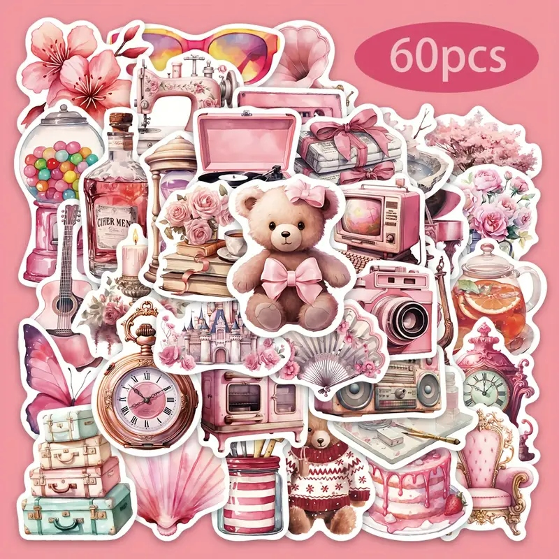 W170 Наклейки наклейки бомбові наклейки Vintage Coquette Pink 60 PCS