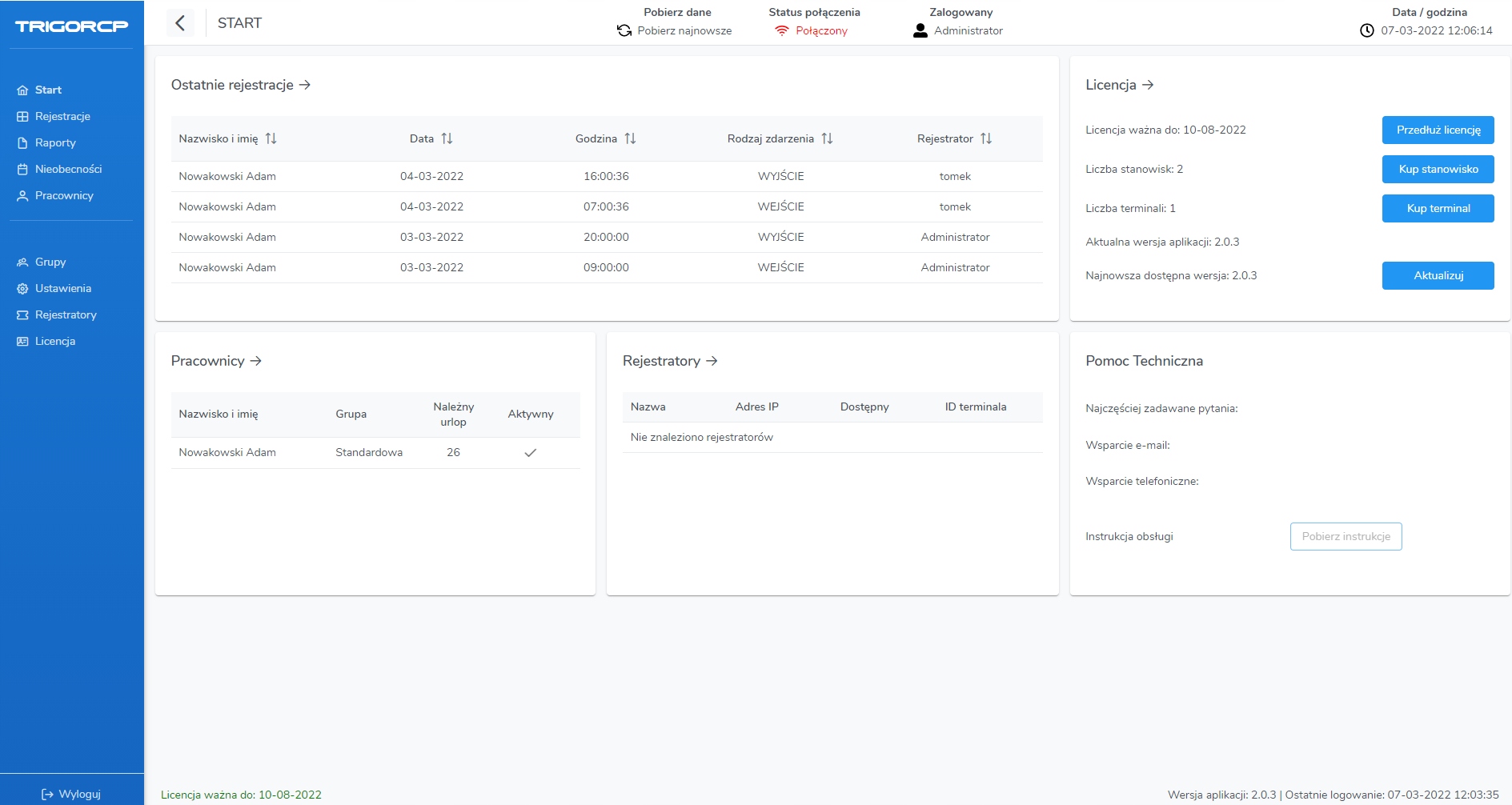 БІЛЬШЕ!! Тільки у нас разом з терміналом ви отримаєте програму TRI-GO-RCP Desktop. Ліцензійний збір на 6 місяців (входить у вартість пристрою на цьому аукціоні). Продовження ліцензії на рік коштує 200 злотих нетто. Це лише 54 ЗЕЛЕНІ на день!! Ми єдина компанія, яка додає власний додаток для обліку робочого часу (на додаток до стандартного програмного забезпечення виробника). TRI-GO-RCP Desktop — це найпростіша у використанні програма для поселення працівників. Він був розроблений і написаний у Польщі польськими програмістами. Тому він ідеально вписується в реалії польського бізнесу та найкраще відповідає вашим потребам!