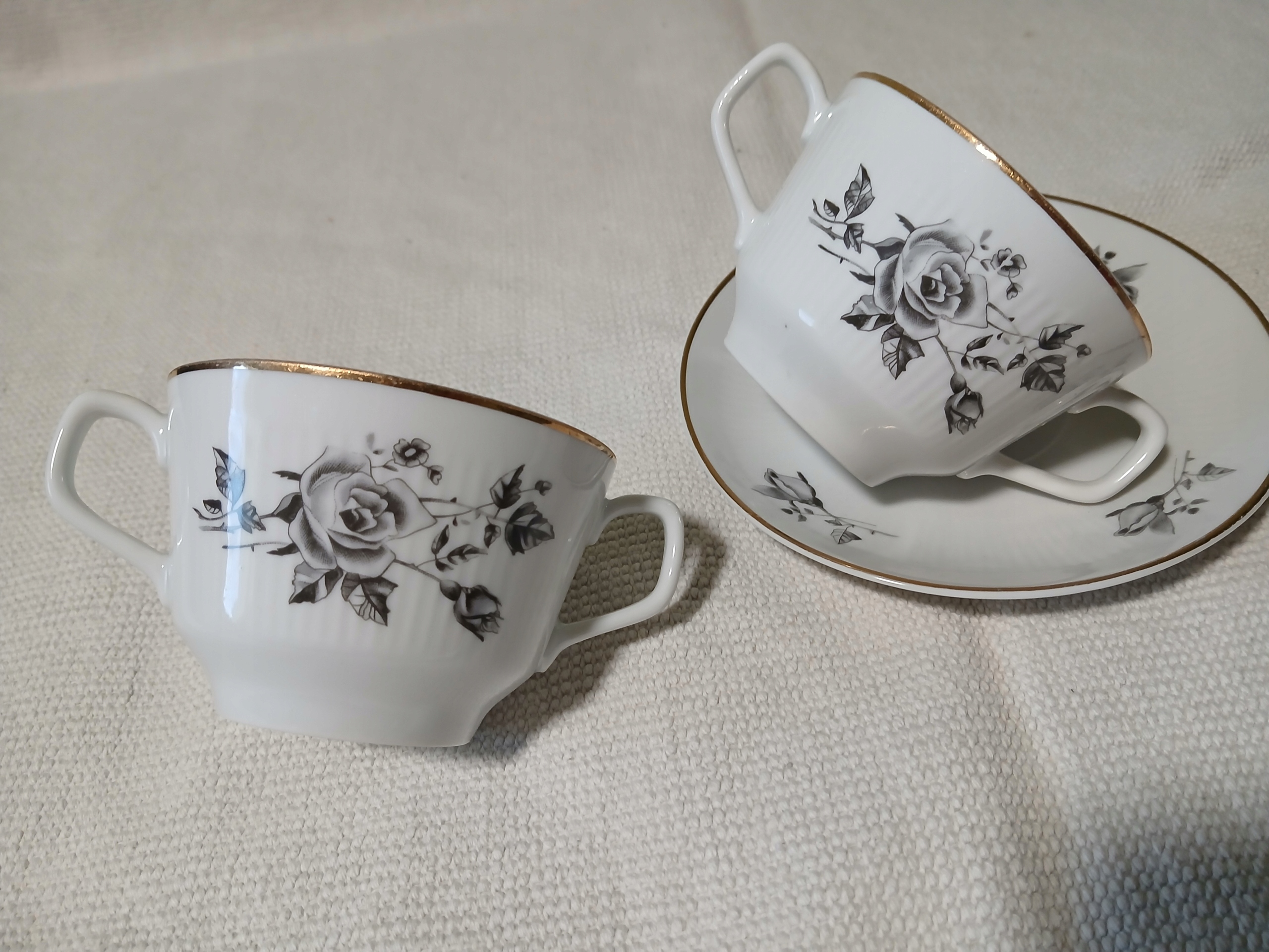 WAŁBRZYCH BULIONÓWKI TALERZYK SZARA RÓŻA STARA PORCELANA VINTAGE PRL