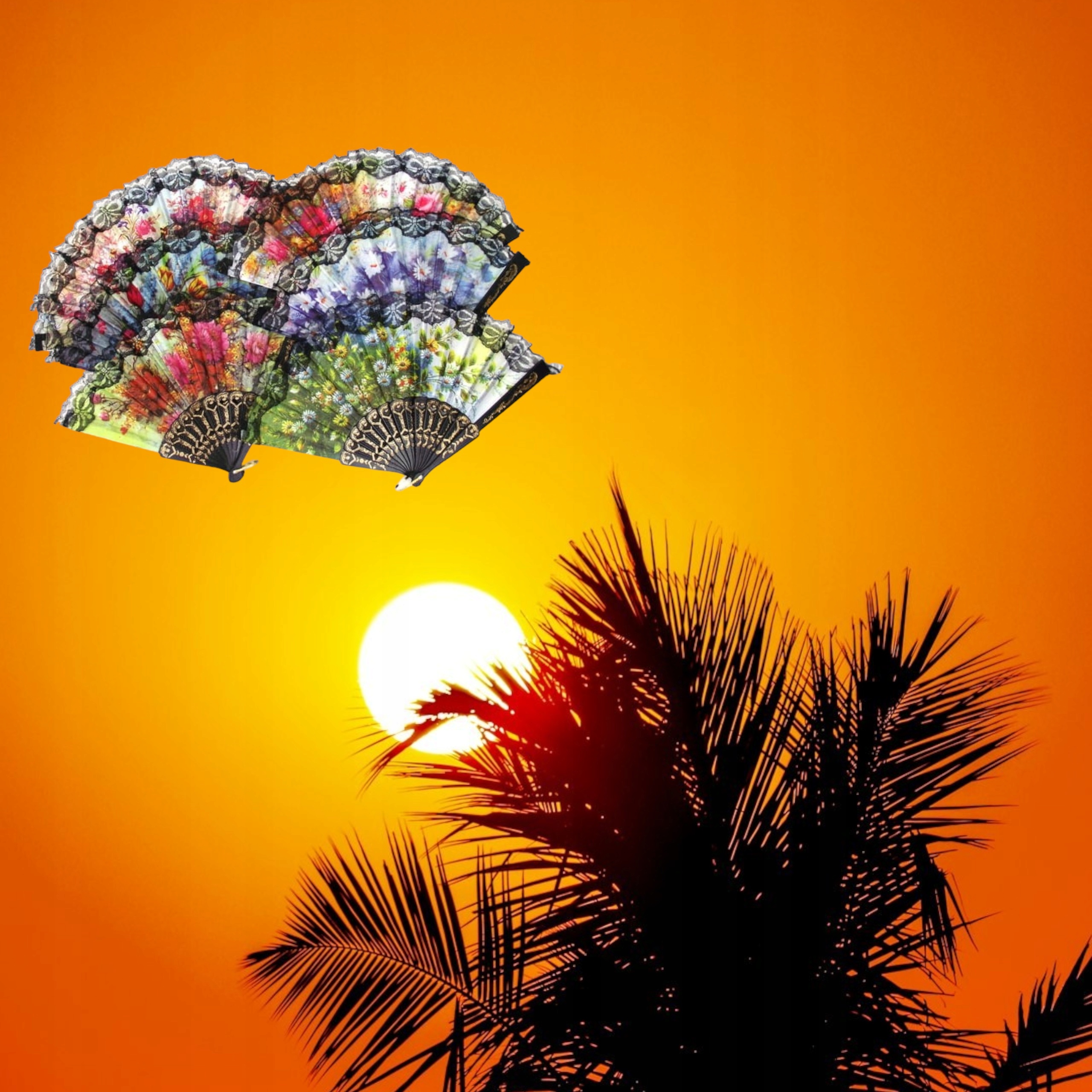 WACHLARZ HISZPAŃSKI Z KORONKĄ SKŁADANY NA UPAŁY LATO OZDOBNY KWIATY