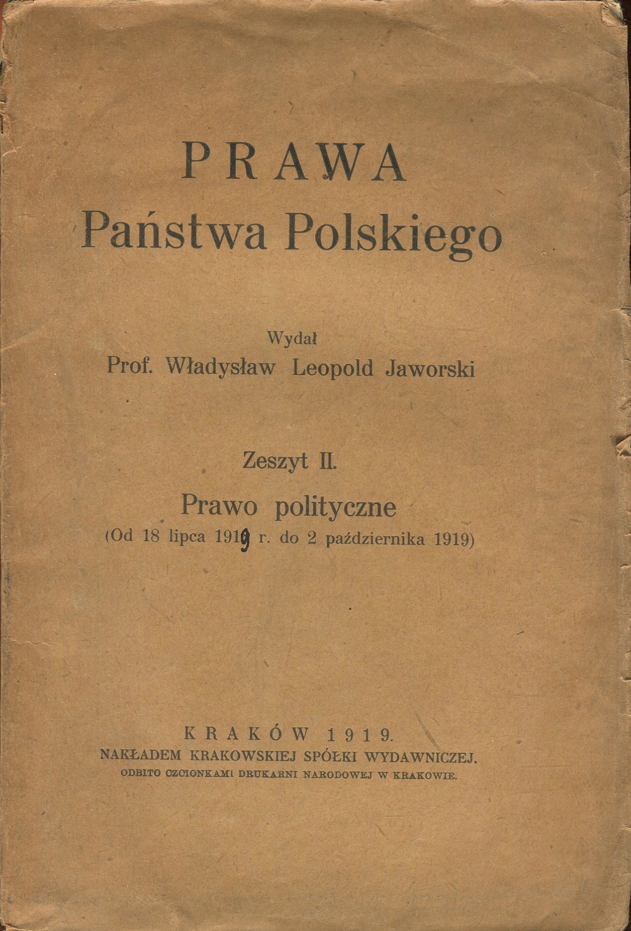 Władysław Jaworski PRAWA PAŃSTWA POLSKIEGO. Z. II. PRAWO POLITYCZNE 1919