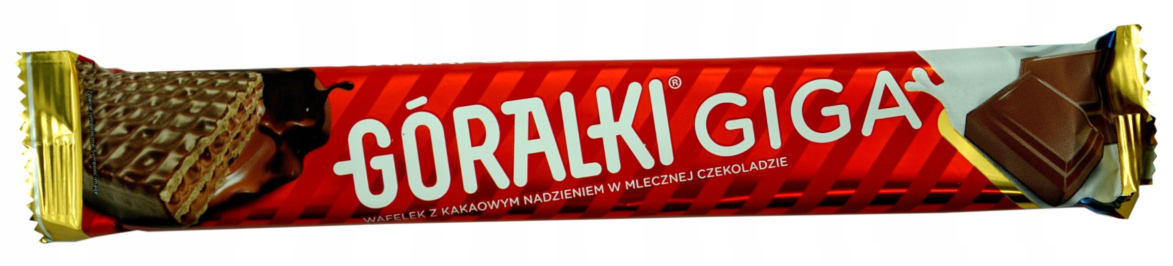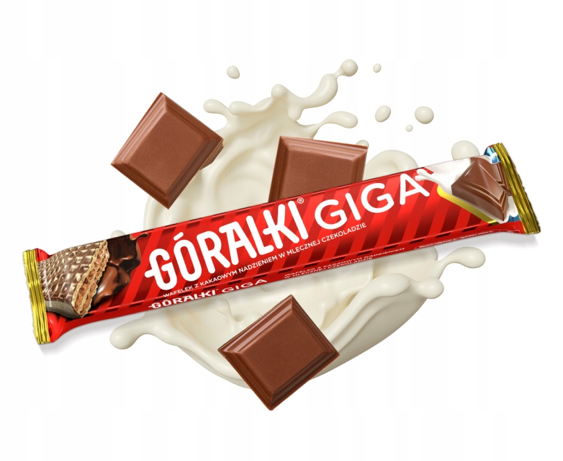 Такого ще ніколи не було! Найбільші горяни в історії! Цілих 22 сантиметри смачної вафлі з какао-кремом. Покритий смачним десертним шоколадом, він порадує вас з першого шматочка. Підтверджена інформація. Однак у нас є до вас невелике прохання. Зарезервуйте більше часу. Цього разу насолода триватиме ще довше. Giga Góralki у чорному шоколаді – ваш солодкий must have!