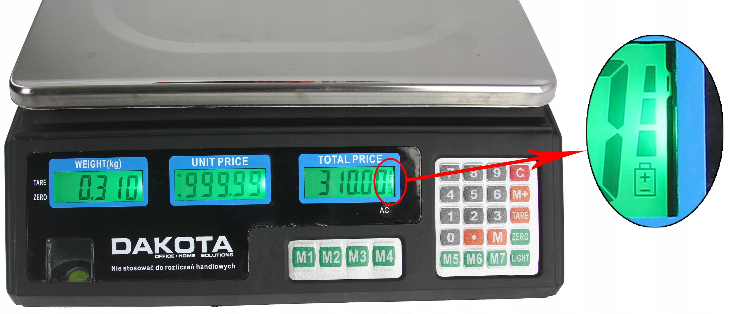 Універсальні ваги, для використання в приміщенні та на вулиці, корисні в мобільній та стаціонарній торгівлі. Ваги мають вбудований рівень і 6 чітких дисплеїв, 3 спереду для керування вагами та 3 ззаду для клієнта. Дисплеї дуже чіткі та мають можливість 2- підсвічування сцени з різними рівнями яскравості світла.