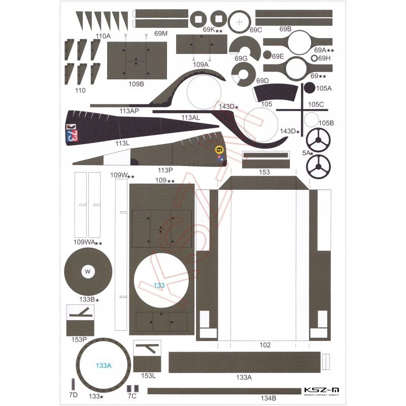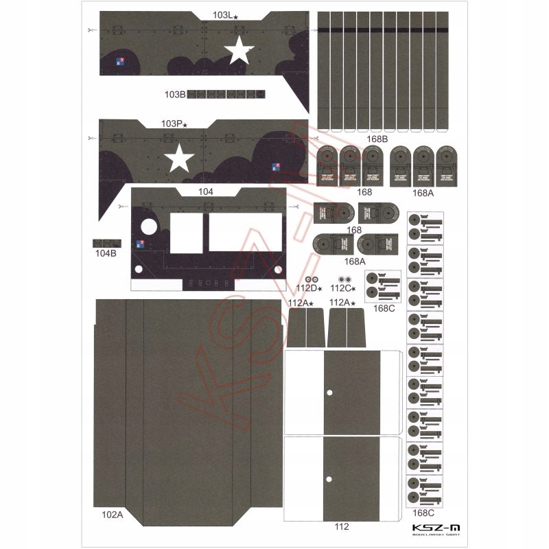 Модель напівгусеничного самохідного зенітного комплексу. з періоду Другої світової війни. Складна модель, з можливістю виготовлення повного шасі, двигуна та відділення озброєння. Картина 1-ї бронетанкової дивізії генерала Мачека (перша половина 1945 р.).