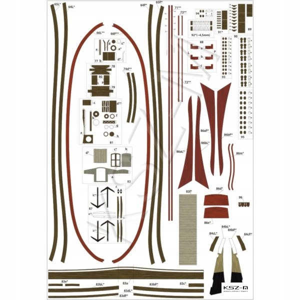 - Розміри моделі після склеювання: ширина корпусу: 8 см, загальна довжина: 32 см, висота: 31 см