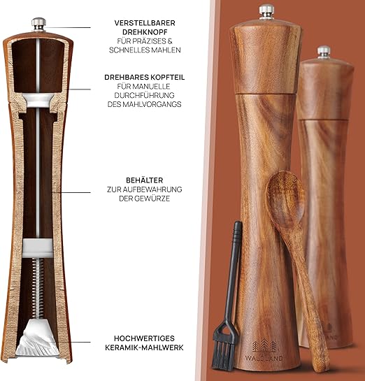 WALDLAND MŁYNEK DO SOLI I PIEPRZU Z DREWNA Z CERAMICZNYM MECHANIZMEM 21CM