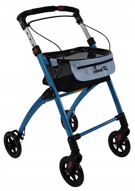 Це алюмінієвий ролик,з сумкою та підносом. Максимальна вага користувача - 100 кг, а навантаження на сумку - 5 кг. Завдяки сучасному дизайнулегко складається для транспортування або зберігання. Загальна вага становить 6,6 кг. Його основне завдання - допомогти інвалідам і людям похилого віку вставати, стояти, ходити і сидіти. Можна відрегулювати висоту натискної ручки відповідно до росту користувача.