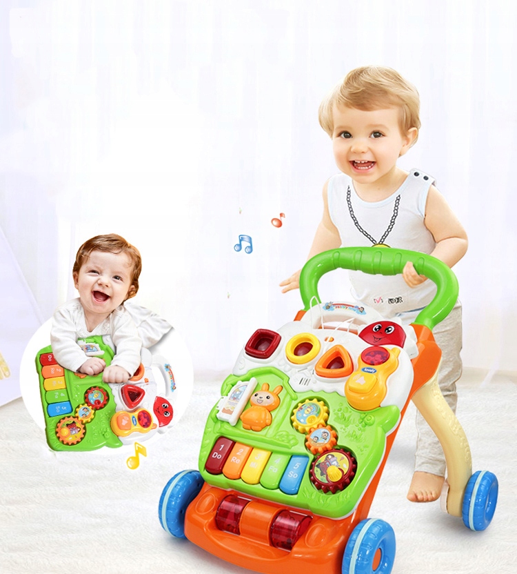 Представлена каталка в поєднанні з навчальною панеллю впливає не тільки на навчання ходьби, але й на мовний, сенсорний і моторний розвиток малюка, а також на навчання фігурам, цифрам і буквам. Навчальні ходунки з інтерактивною звуковою дошкою дуже прості у використанні та збірці. Іграшка упакована у велику естетичну коробку, тому підійде як подарунок молодим батькам. Штовхач рекомендований всім маленьким дітям старше 9 місяців. Навчальна панель у передній частині ходунків знімна, що дозволяє грати в ліжку або під час подорожі без використання решти обладнання.