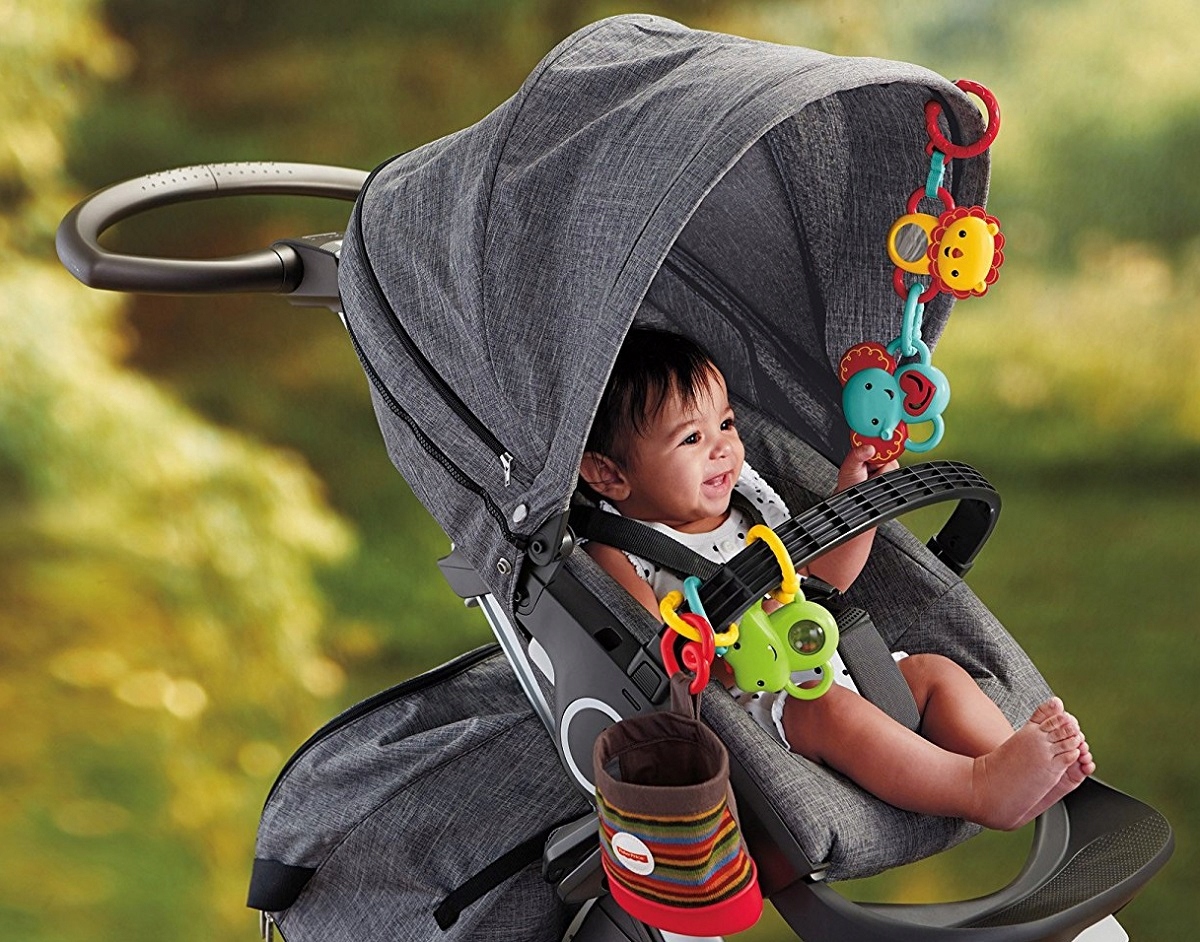 Симпатичного лева, крокодила та слона можна легко прикріпити до коляски.