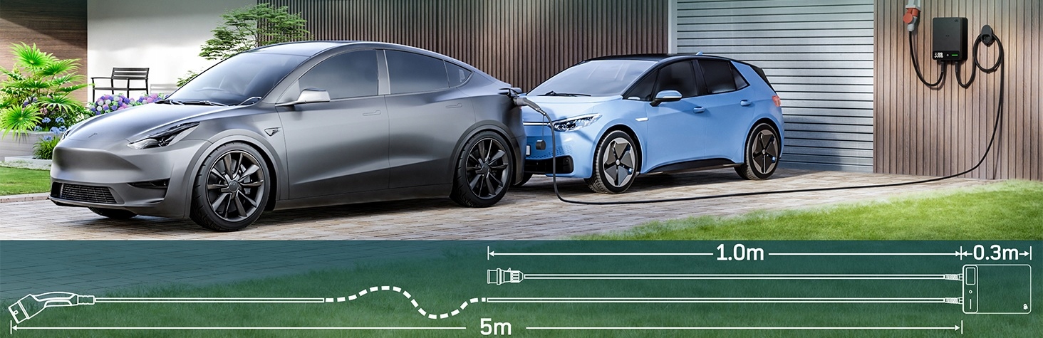 Завдяки зарядній потужності до 22 кВт та трифазного джерела живлення, пристрій ідеально підходить як для домашнього гаража, так і для невеликої компанії чи флоту автомобіля.