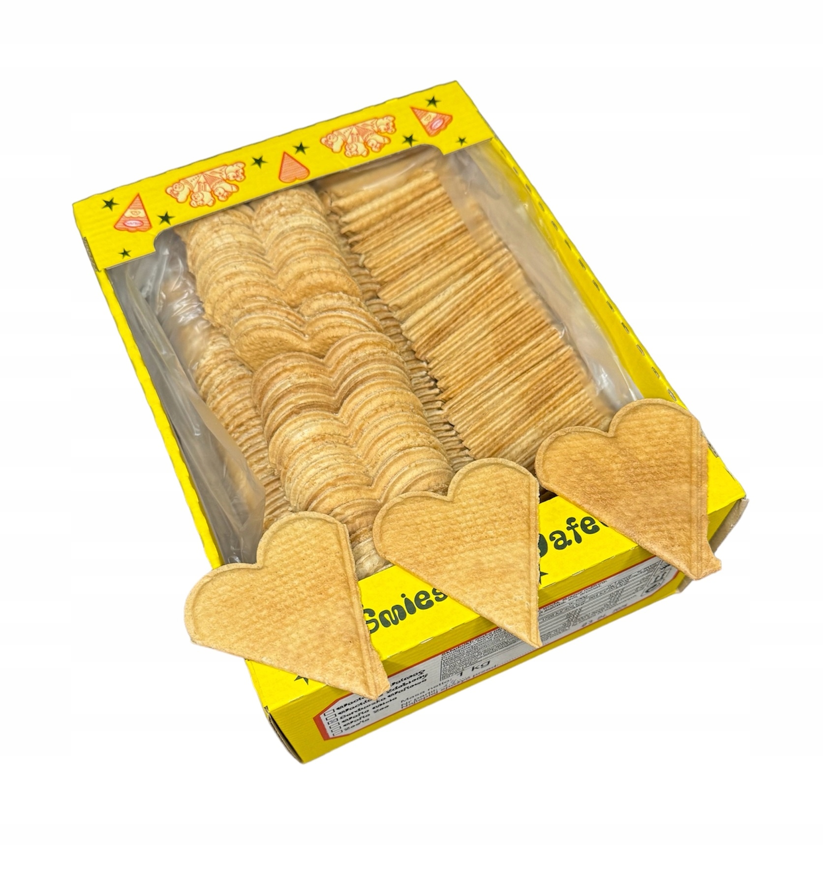 Хрусткі вафлі у формі серця чудово смакують як самостійна закуска. Також вони стануть незамінним доповненням як смакової, так і візуальної сторони готових десертів. Вафлі особливо добре поєднуються з морозивом.
