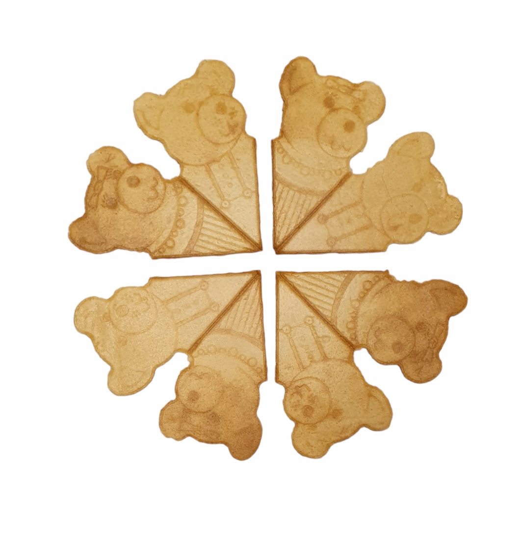 Хрусткі вафлі у формі ведмедиків чудово смакують як самостійна закуска. Також вони стануть незамінним доповненням як смакової, так і візуальної сторони готових десертів. Вафлі особливо добре поєднуються з морозивом.