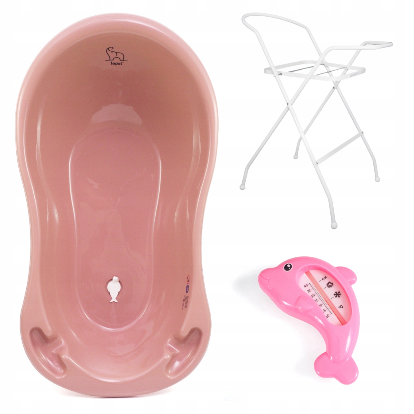 Дитяча ванночка Lapsi із серії Elephant темно-рожевого кольору ідеально підходить для купання немовлят і дітей старшого віку.