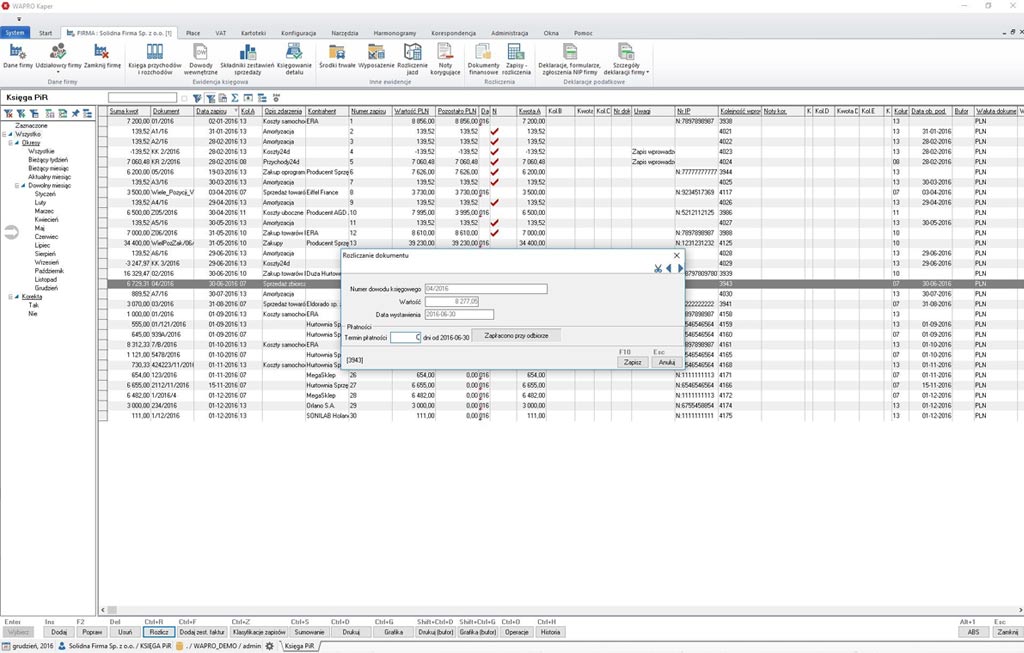 - Ведення книги доходів і витрат, єдиний облік доходів, розрахунки доходів від оренди, вільне визначення реєстрів ПДВ, ведення розрахунків, імпорт даних із програм WAPRO Mag і WAPRO Fakturka, врегулювання ZUS, в тому числі співпраця з "Płatnik"