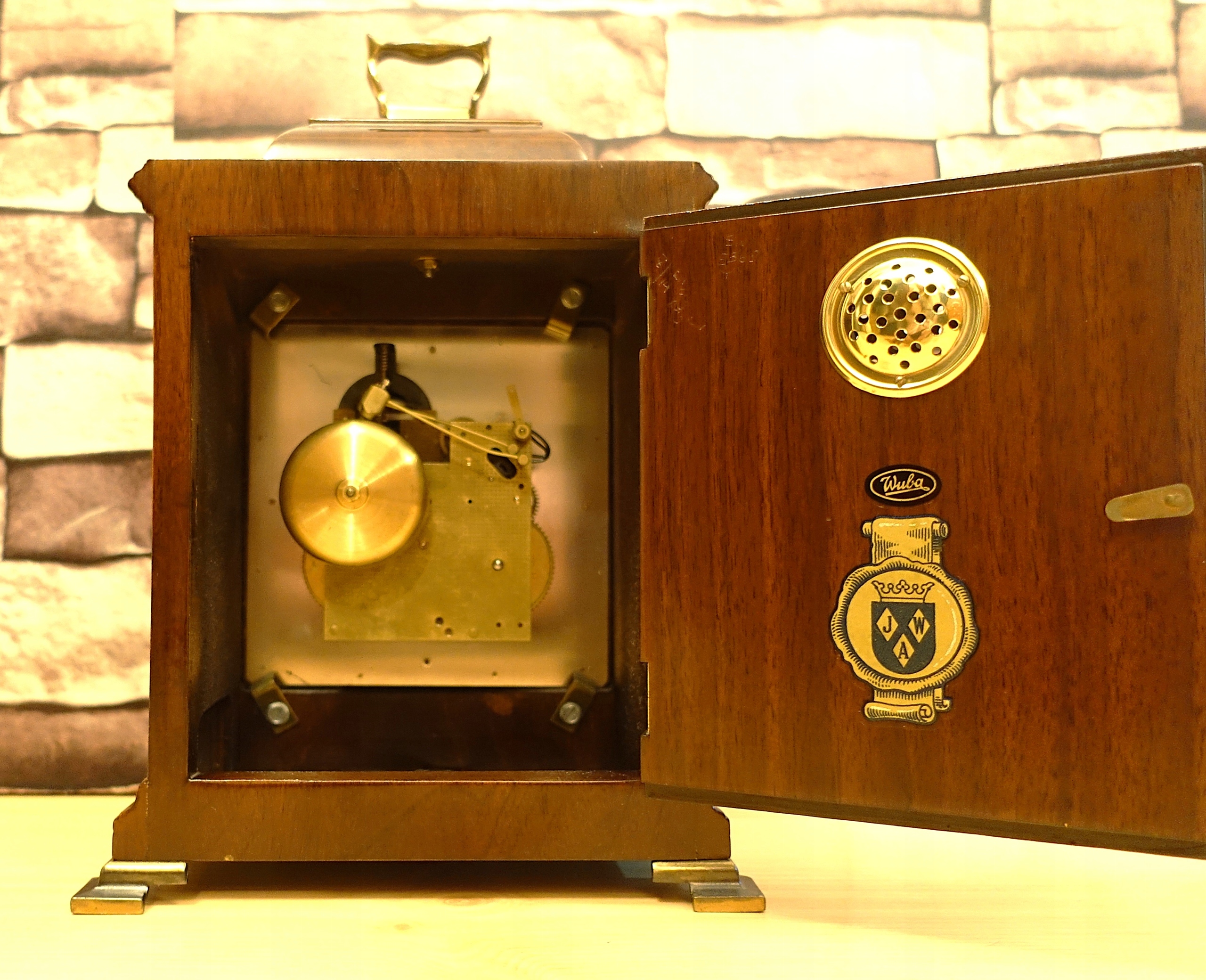 Механізм годинника з пружинним напруженням, баланс розміщується в елегантній дерев’яній коробці.