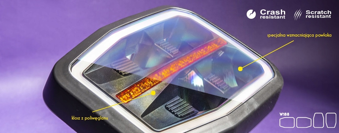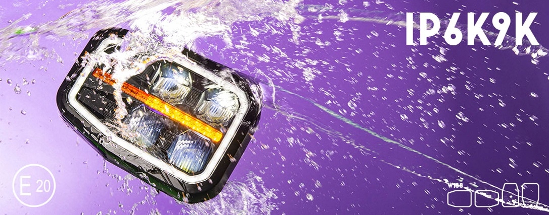 Лампи W188 були схвалені для E20, тому відповідають усім вимогам допуску. Вони були перевірені в незалежній лабораторії та показали рівень захисту IP6K9K, це означає, що вони повністю стійкі до проникнення пилу та струменів води.