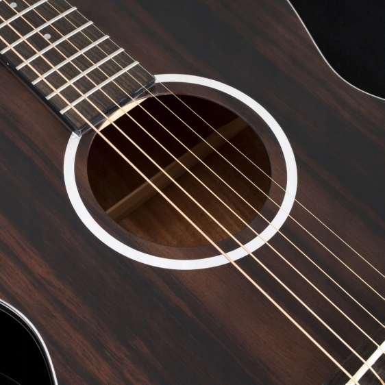 Washburn DF EFE Старовинне тіло в гітарі з глибоким лісом чорного чорного кольору невелике і зручне. Звукове підключення тіла з не стандартними розмірами з типами деревини, що використовуються для будівництва, справді унікальний. Сумії деревини, природно, сповнені глибоких, багатих тонів, які підкреслюють низькі регістри. Менше народне тіло та ребра гарантують, що воно також сформульоване та збалансоване. Вам потрібно оприлюднити свій інструмент? Немає проблем - Deep Forest Ebony F оснащений активною електронікою Barcus Berry, включаючи інтегрований тюнер. Гітара DF EFE має верх від Heban, який цінується через глибокі та сильні басові та нижчі частоти, і в той же час забезпечує чисті тони високі та злегка витягнуті середні діапазони, схожі на Палісандру. Спина і сторони деревини Оуме зберігають звук більше у напрямку теплішого кольору. Washburn DF EFE - специфікація: Форма корпусу: народ Топ: позбавлений Гебана Задня частина: Okoume Сторони: Okoume Гриф: Махагоні Fingerboard: будівельна деревина Мензура: 25,5 " Електроніка: Barcus Berry LX4 Active з Tuner Колір: смугасте чорне дерево Фініш: матовий Аксесуари: Chrome