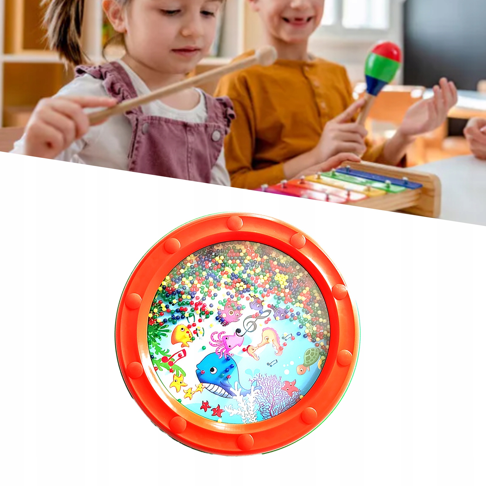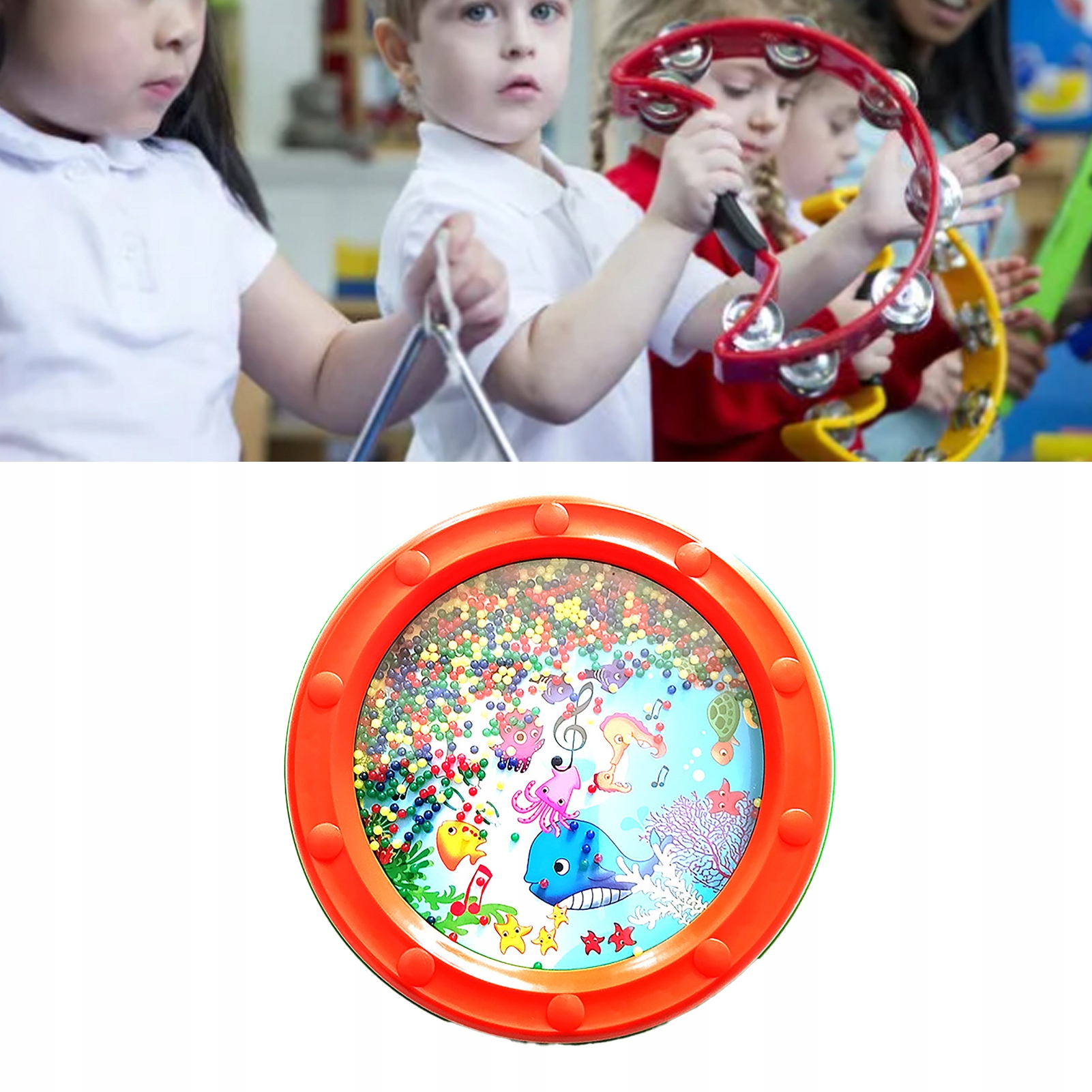 Wave Bead Ocean Drum Пластиковий навчальний барабан Gentle Ocean Percussion Drum для дітей і дорослих 10 дюймів помаранчевого кольору