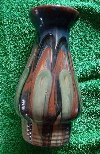 WAZON brązowy wielokolorowy ciekawy kamionka pamiątka PRL h- 23,5 cm /cc