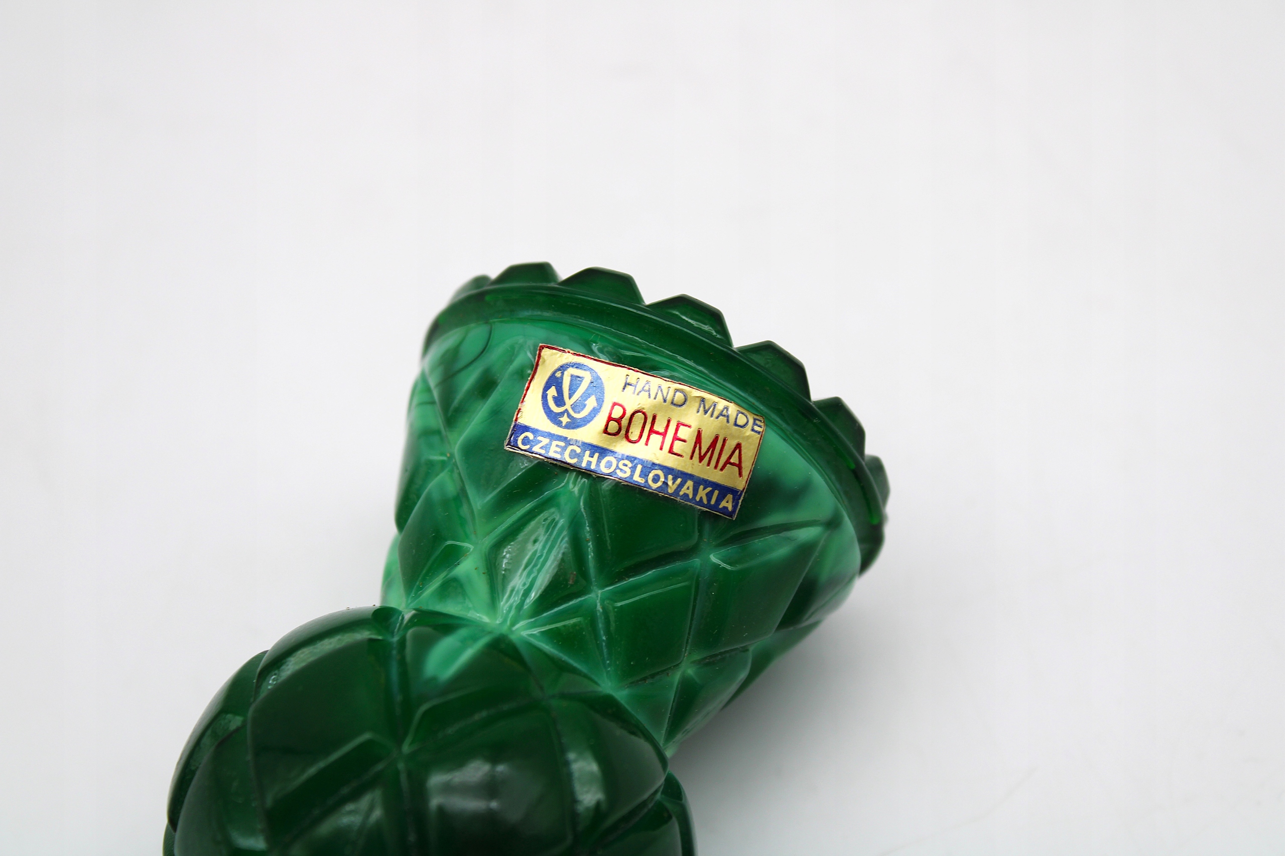 WAZONIK SZKŁO MALACHITOWE PROJEKT CURT SCHLEVOGT STARA CZECHOSŁOWACJA