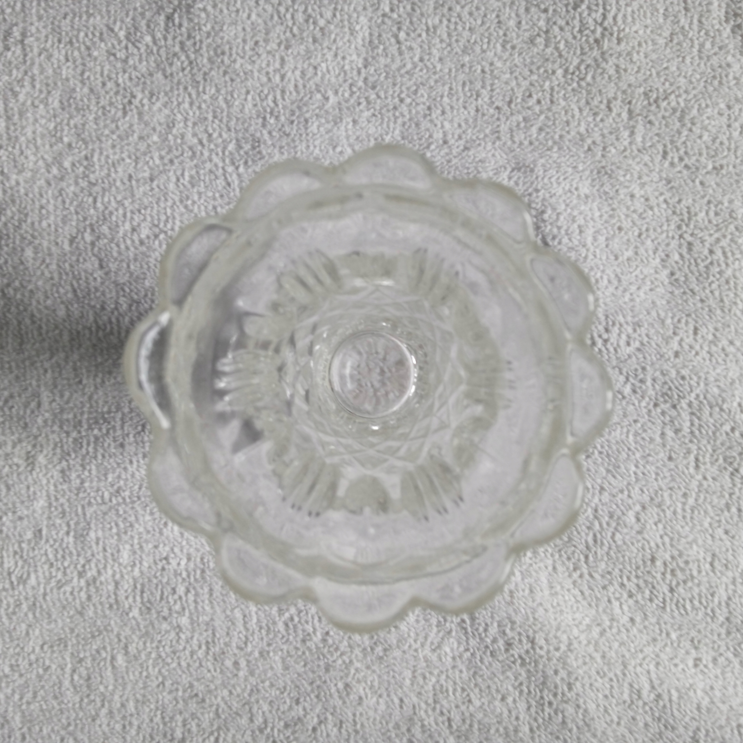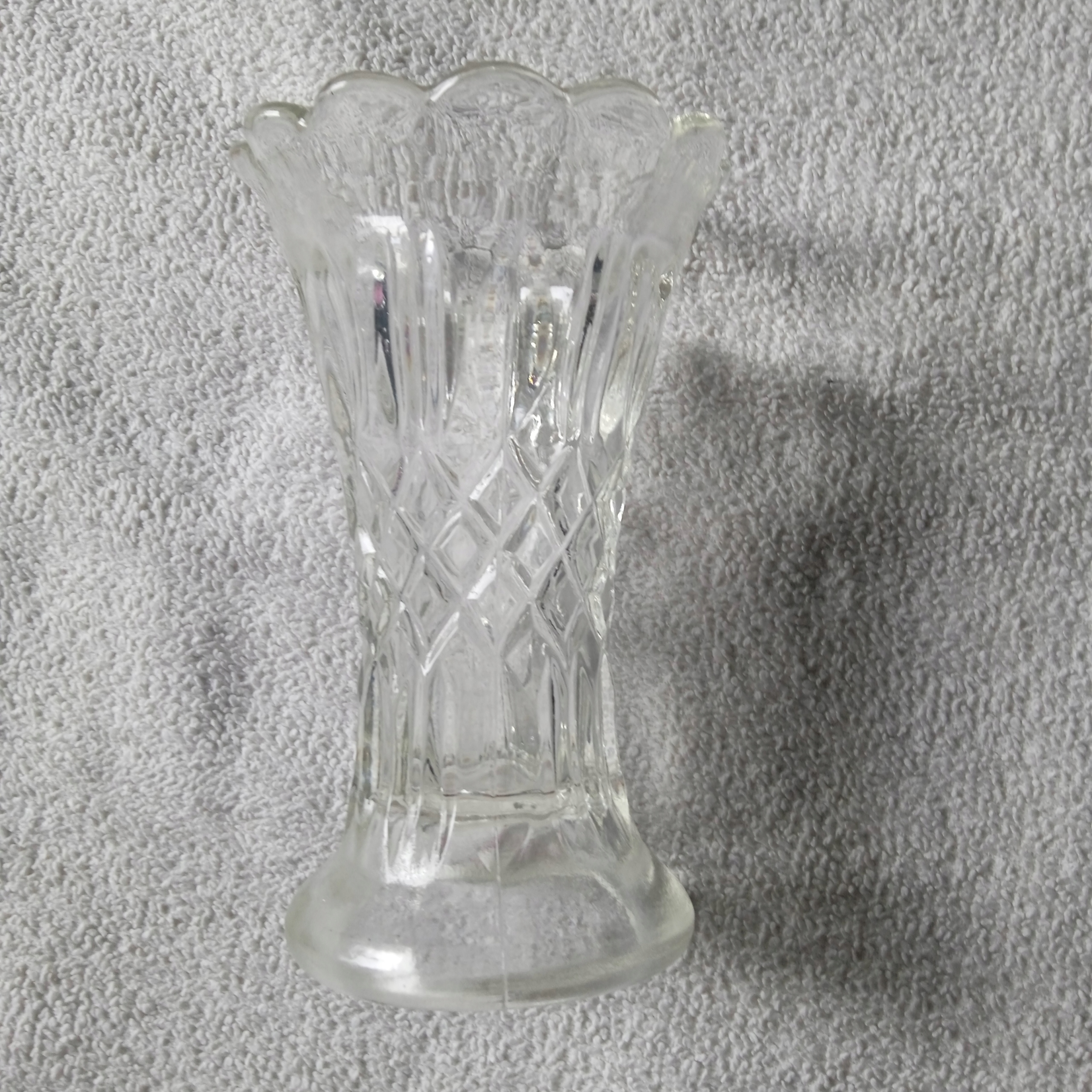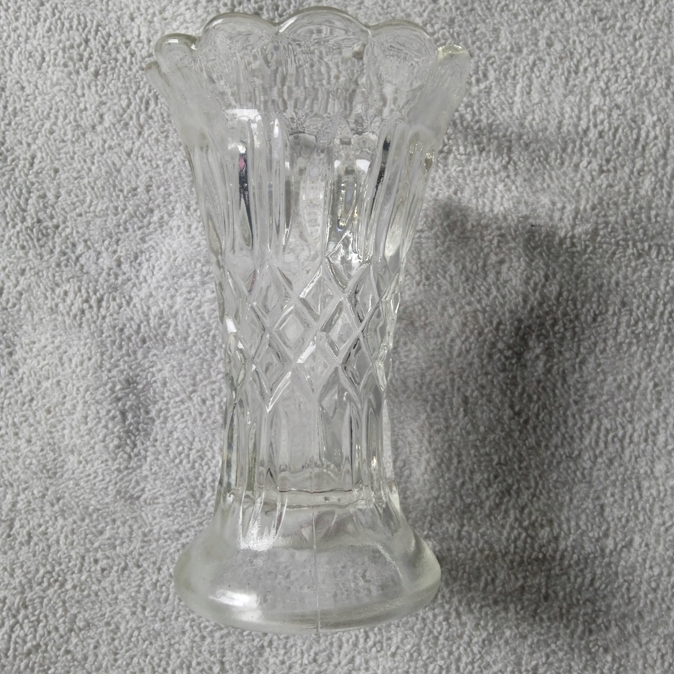 Wazonik z transparentnego szkła prasowanego.