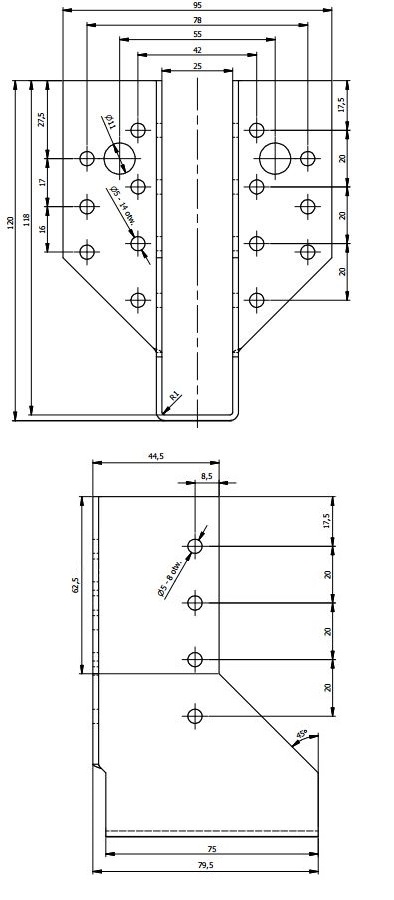 Стандартний балковий підвіс, що дозволяє встановити без зазору між з’єднаними елементами. Додаткові великі діаметри отворів означають, що їх також можна використовувати для кріплення балок до бетонної стіни.