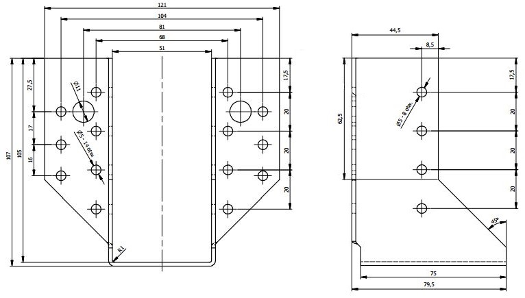 - кількість отворів - 22 отвори ø5 мм, 2 отвори ø11 мм