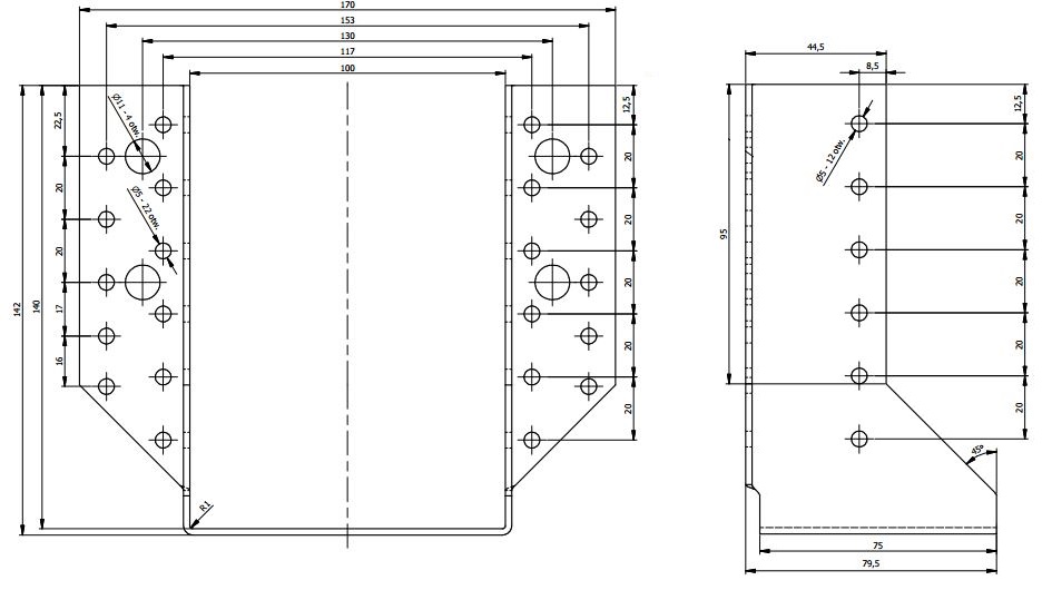 - кількість отворів - 34 отвори ø5 мм, 4 отвори ø11 мм