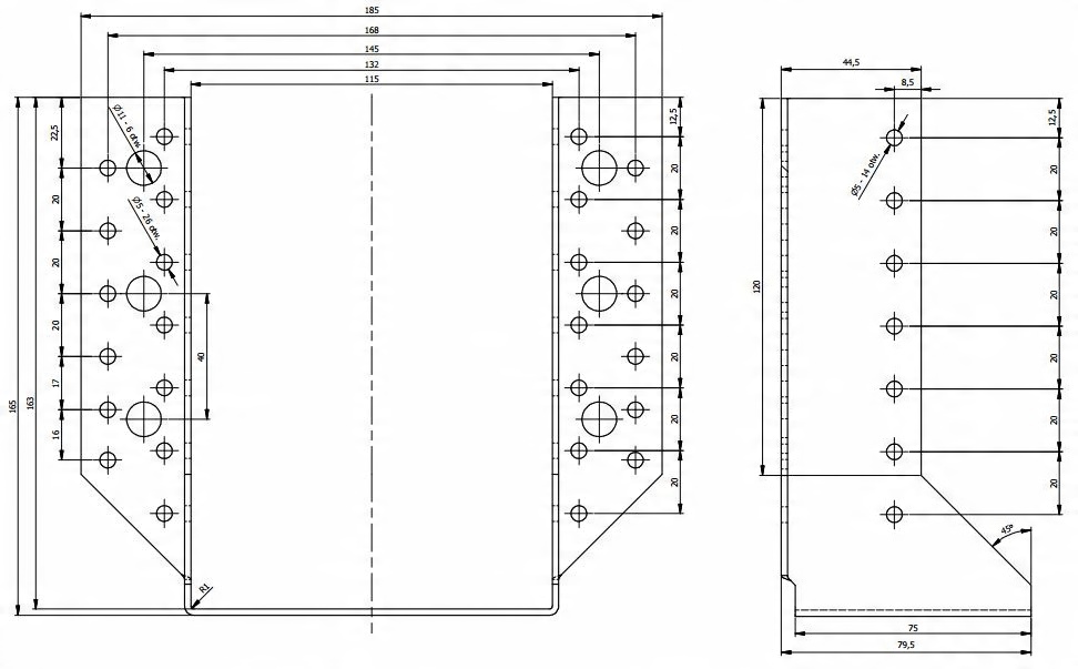 - кількість отворів - 40 отворів ø5 мм, 6 отворів ø11 мм