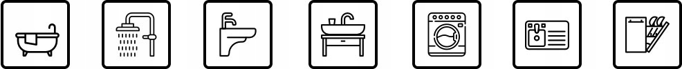 Ванна, душ, умивальник, біде, кухонна мийка, посудомийна машина, пральна машина