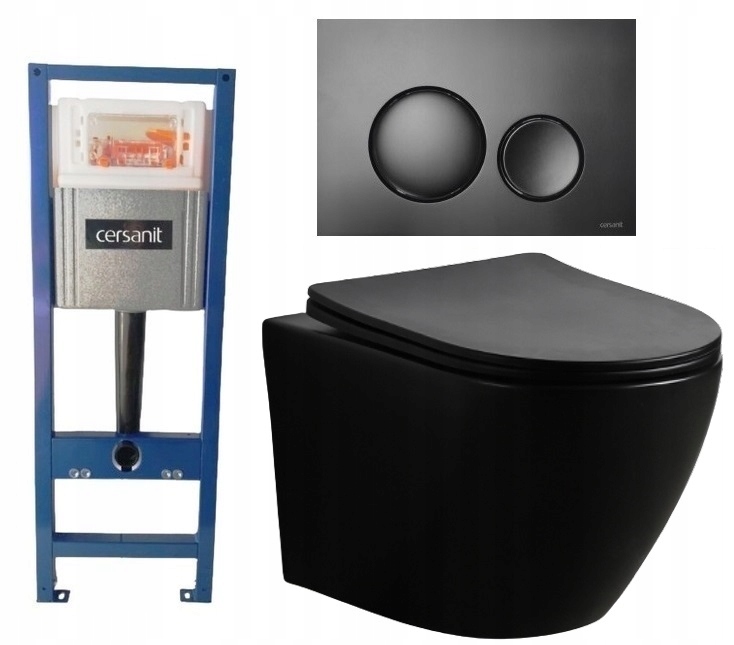WC SET, CERSANIT AURO FRAME, MAT BLACK BUTTON, ARBO SLIM RIM BLACK ЧАША