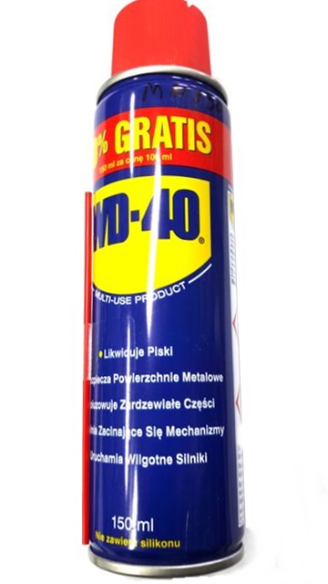 Приклади використання включають змащування та послаблення з’єднань і петель, видалення бруду, видалення застряглих болтів і гвинтів і запобігання корозії. Продукт також може бути корисним для видалення вологи.