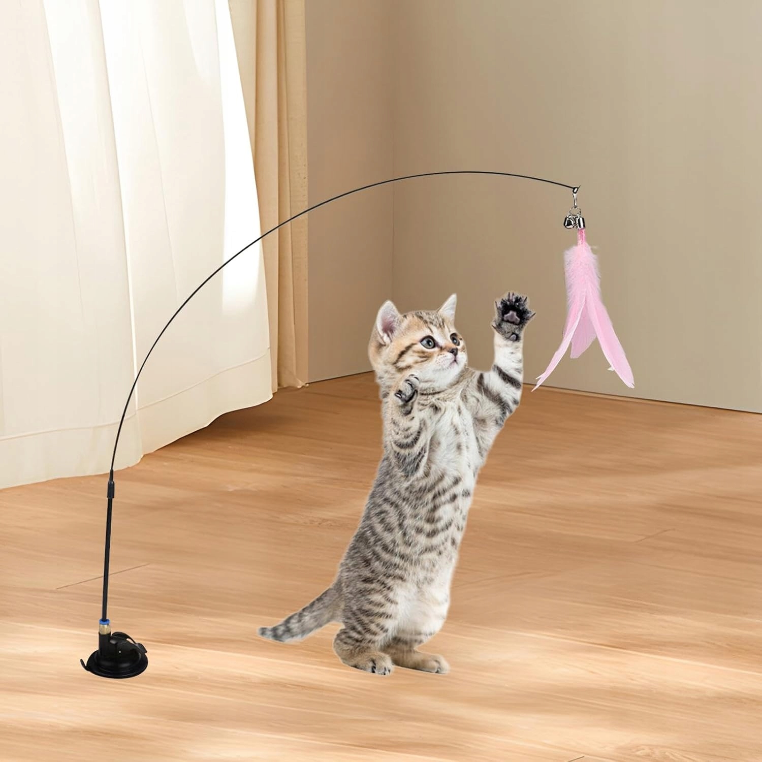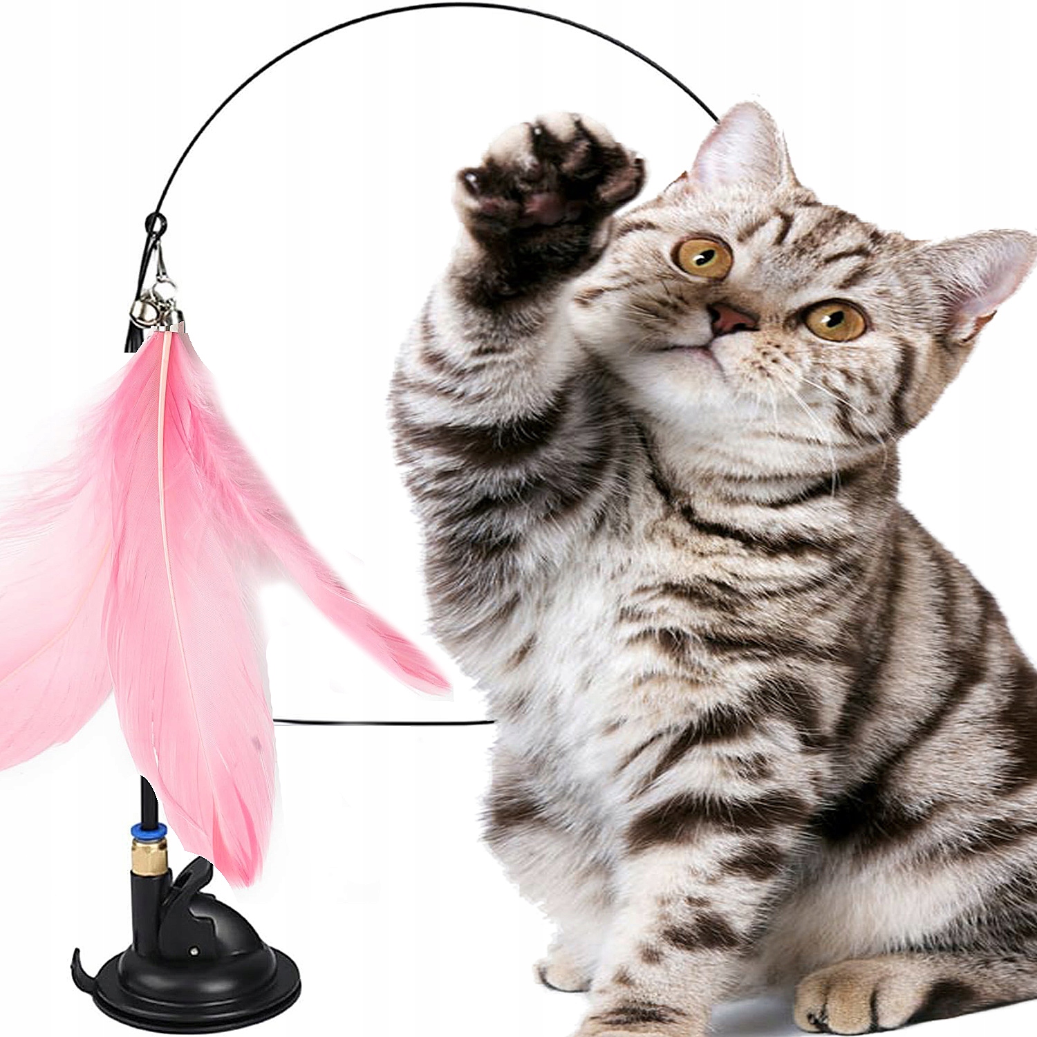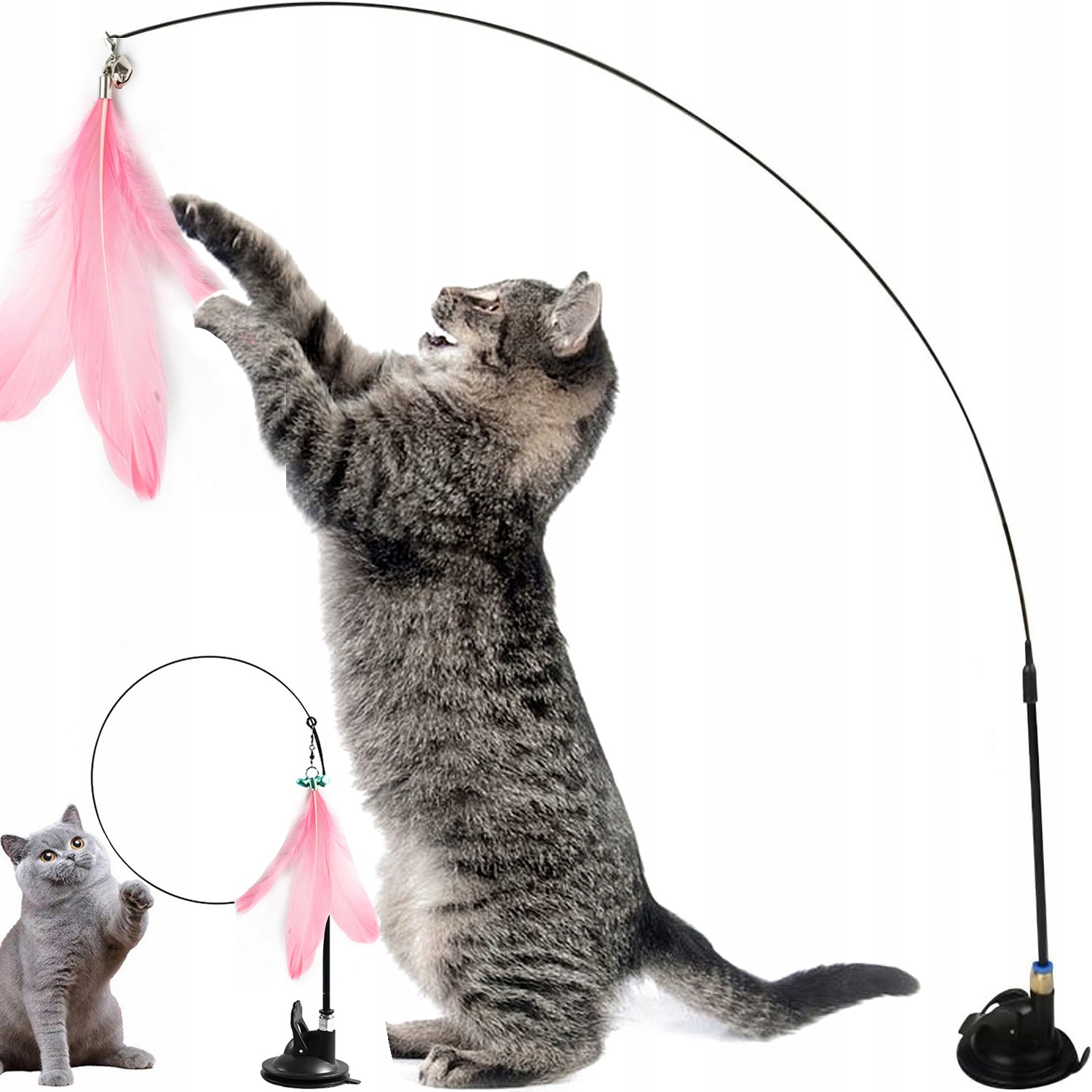 WĘDKA DLA KOTA Z PRZYSSAWKĄ LATAJĄCE PIÓRKA RUCHOMA ZABAWKA INTERAKTYWNA