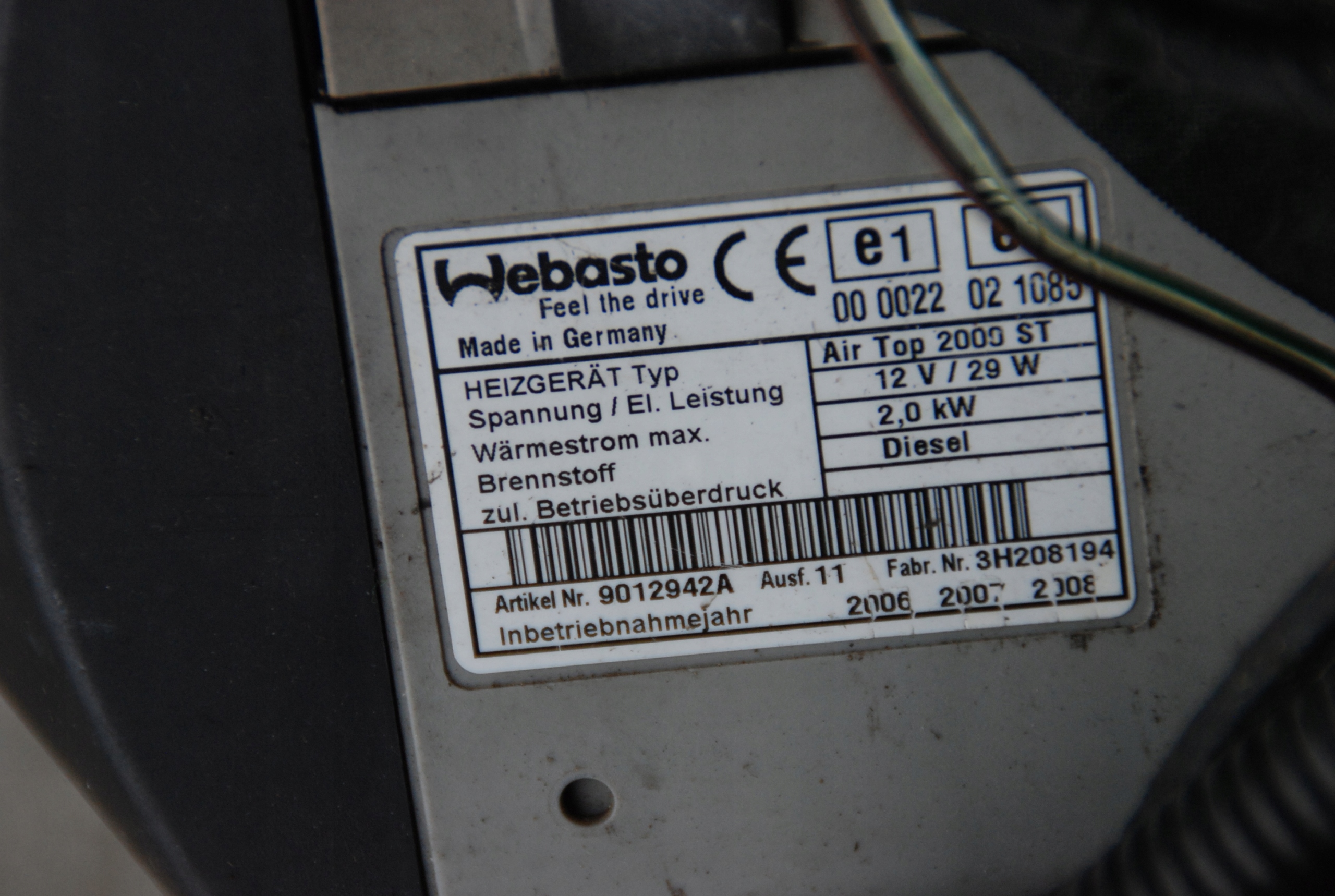 Webasto AIR TOP 2000 ST 12V Diesel 9012942A