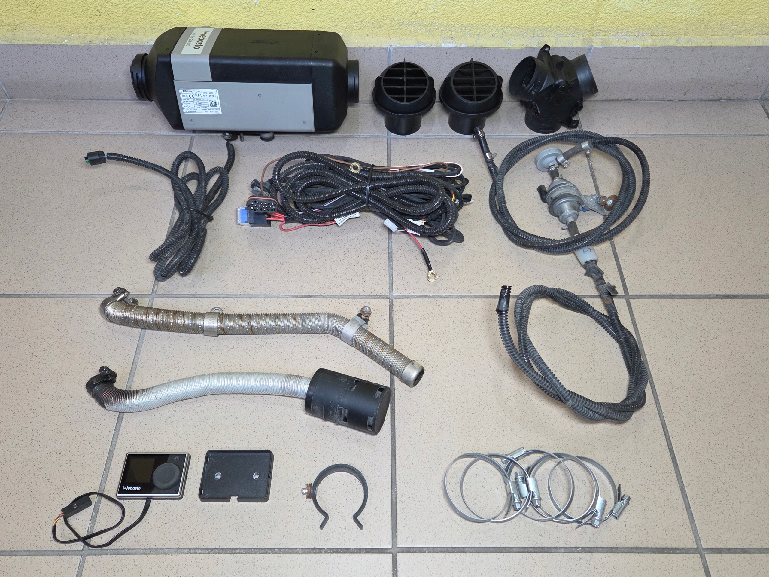 Webasto Air Top 2000 STC 2021 рік - набір аксесуарів, видно на фотографії. Перед тим, як демонтуватися, пристрій був запущений - він працював правильно. Проводка завершена. Набір не має зовнішнього датчика температури (я додаю один з іншого набору - він функціональний, але без вилки). Ні в сукупності немає. Повітряна труба завдовжки 260 см. Додаткова вихлопна трубка +/- 70 см (димовий газ). Не соромтеся.