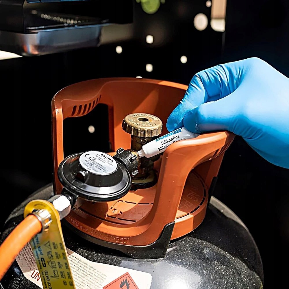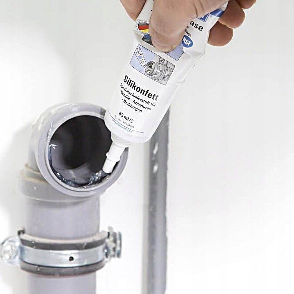 Силіконова мастило WEICON - універсальне, високоефективне, прозоре силіконове мастило з допуском NSF і BAM для питної води. Підходить для використання в місцях, де можливий ненавмисний контакт з харчовими продуктами (напоями, їжею). Висока сумісність з пластиком. Ідеально підходить для змащування гумових або поліуретанових елементів, клапанів, фітингів, деталей машин, систем опалення та сантехніки, монтажу підшипників та встановлення ущільнювальних кілець та інших ущільнень. Нейтральний на запах і смак. Характеризується високою термостійкістю в діапазоні від -50°C до +200°C.