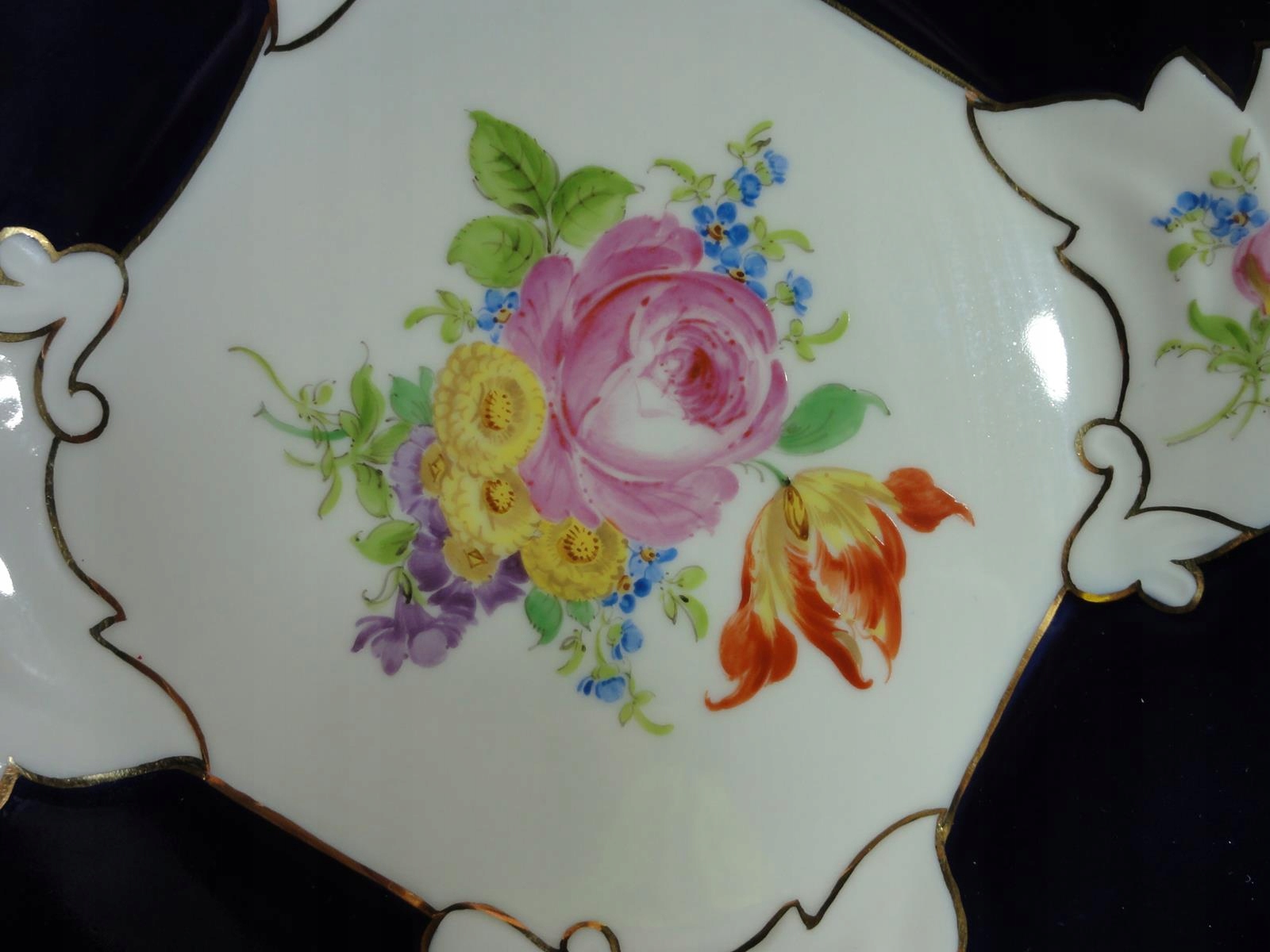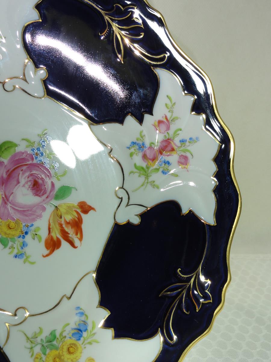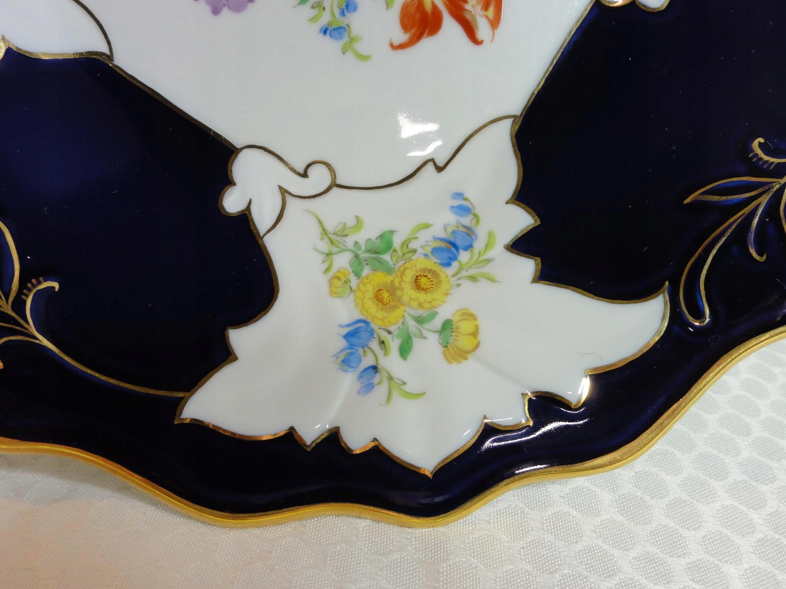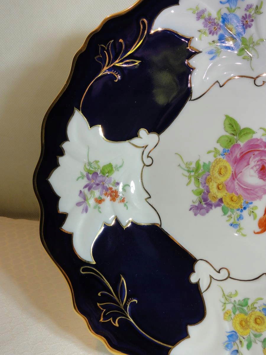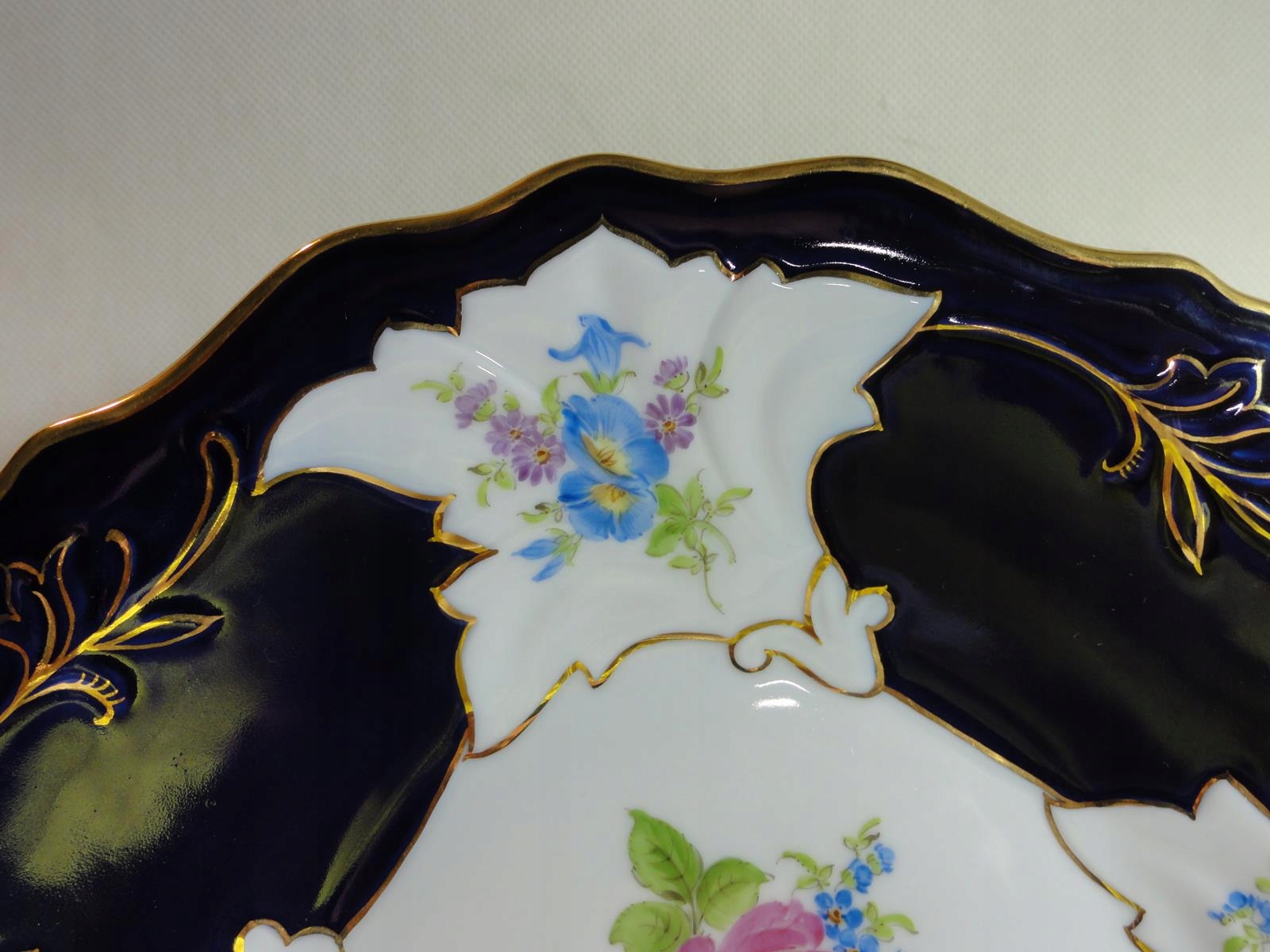 *з білої порцеляни, декоровано калька, розписана кобальтом, з рясною позолотою,