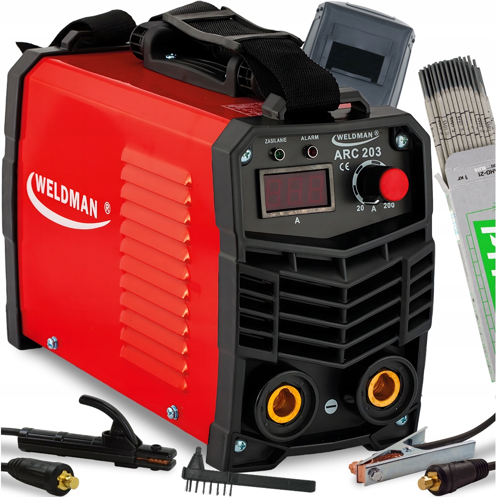 WELDMAN ARC 203 - Призначений для зварювання покритими електродами постійним струмом (DC). Дозволяє зварювати рутиловими і основними електродами до 4 мм різних видів сталі (низьковуглецевої, низьколегованої, нержавіючої та ін.) і чавуну. Зварювальний апарат ARC 203 має цифровий дисплей зварювального струму, оснащений простою світловою системою. Світлодіоди на передній панелі вказують на підключення до живлення (зелений світлодіод) або вимкнення через перевантаження (червоний світлодіод). Під час роботи ми також скористаємося електронним керуванням, плавним регулюванням зварювального струму та спеціальним захистом обладнання від перевантаження.
