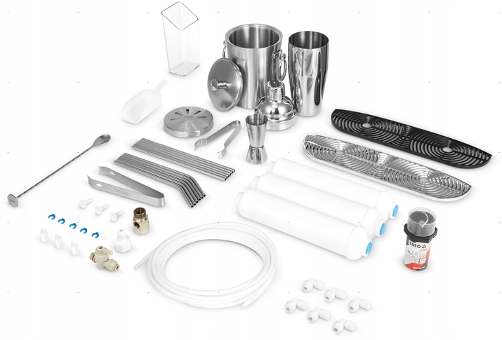 - b> / барменська мірна чашка / сталева соломинка (пряма) - 6 шт. / сталева соломинка (зігнута) - 6 шт. / бармен щипці / щипці для льоду / шейкер / відро для льоду