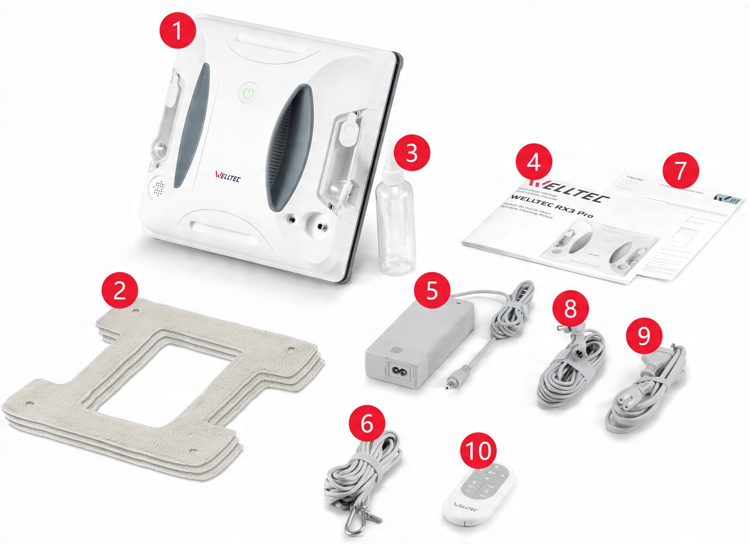 ✅ Робот Welltec RX3 Classic постачається з набором аксесуарів. Він включає9 елементів, які в поєднанні з 5-річною доброзичливою гарантією від дверей до дверей клієнта дозволяють комфортно та спокійно використовувати робота протягом тривалого часу.
