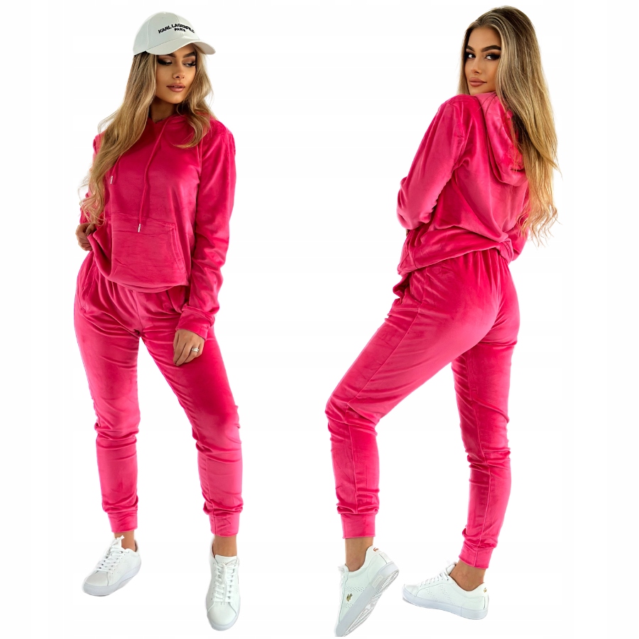 WELUROWY KOMPLET DAMSKI RÓŻOWY Z KAPTUREM - MIŁY W DOTYKU