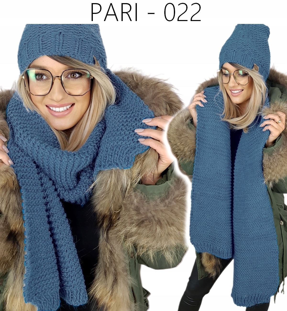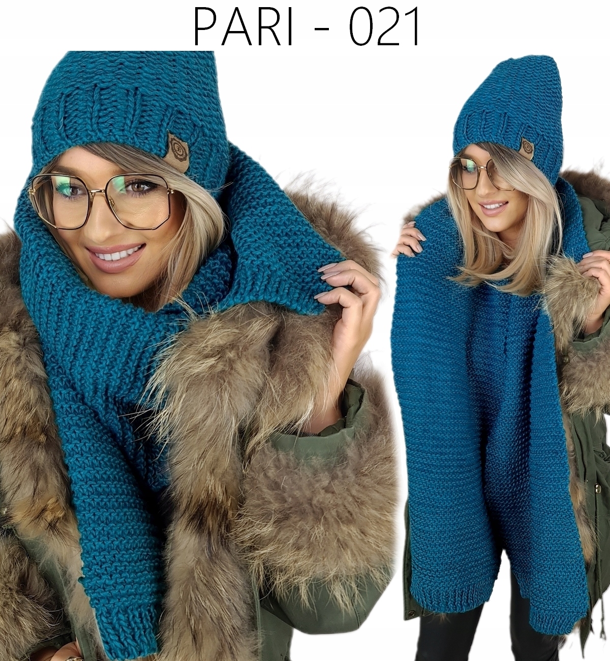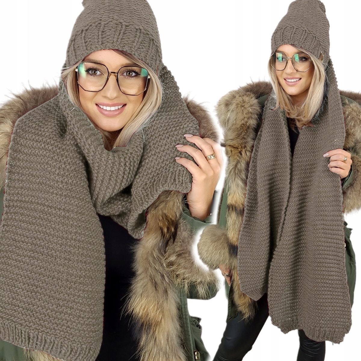 WEŁNIANY GRUBY KOMPLET damski CZAPKA + SZAL szalik zimowy ciepły POLSKI