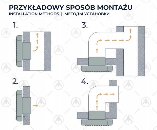 - Розташування вентилятора можна налаштувати відповідно до конкретних потреб, наприклад, поблизу джерела вологи або джерела запахів. li>