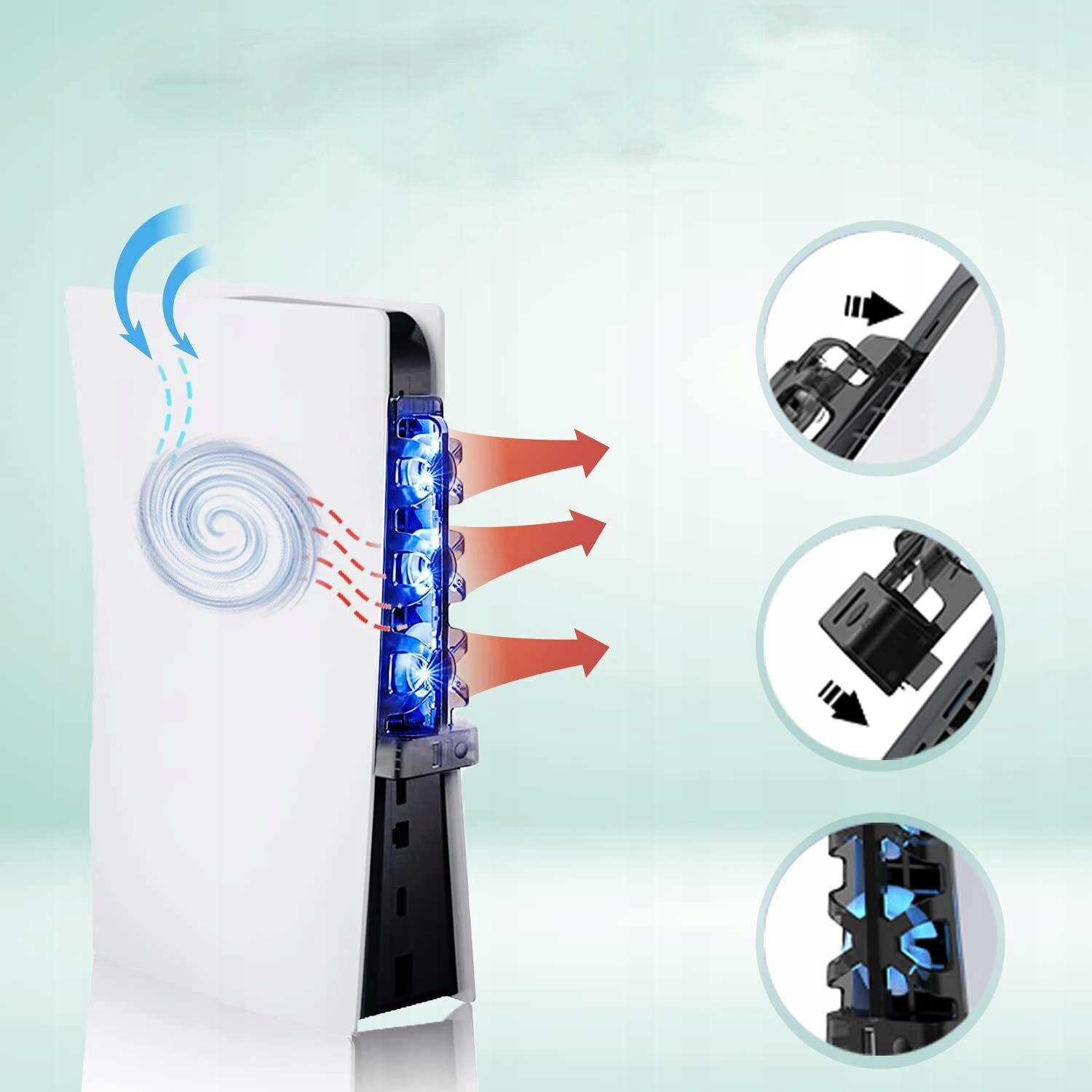 WENTYLATOR CHŁODZĄCY DO KONSOLI PS5, Z 3 WENTYLATORAMI I ŚWIATŁEM LED