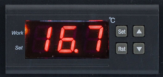 Панель оснащена термостатом з дисплеєм, що дозволяє задавати температуру, при перевищенні якої вмикаються вентилятори.