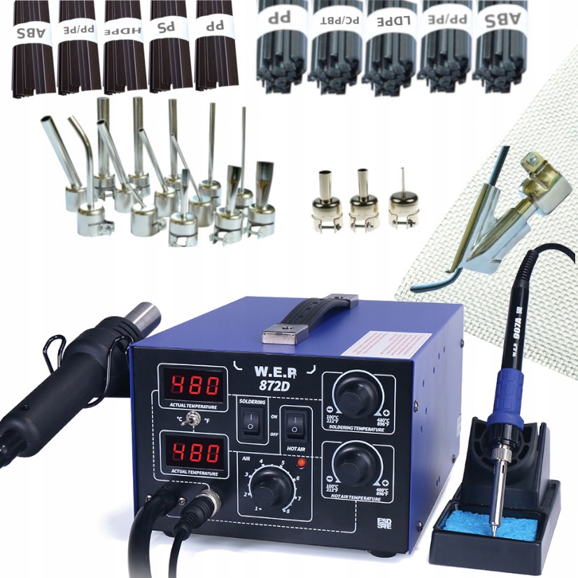 wep wep 872d - це пристрій 2in1 для повітряного зварювального повітря та грот, який використовується для ляльок та пайки електронних систем